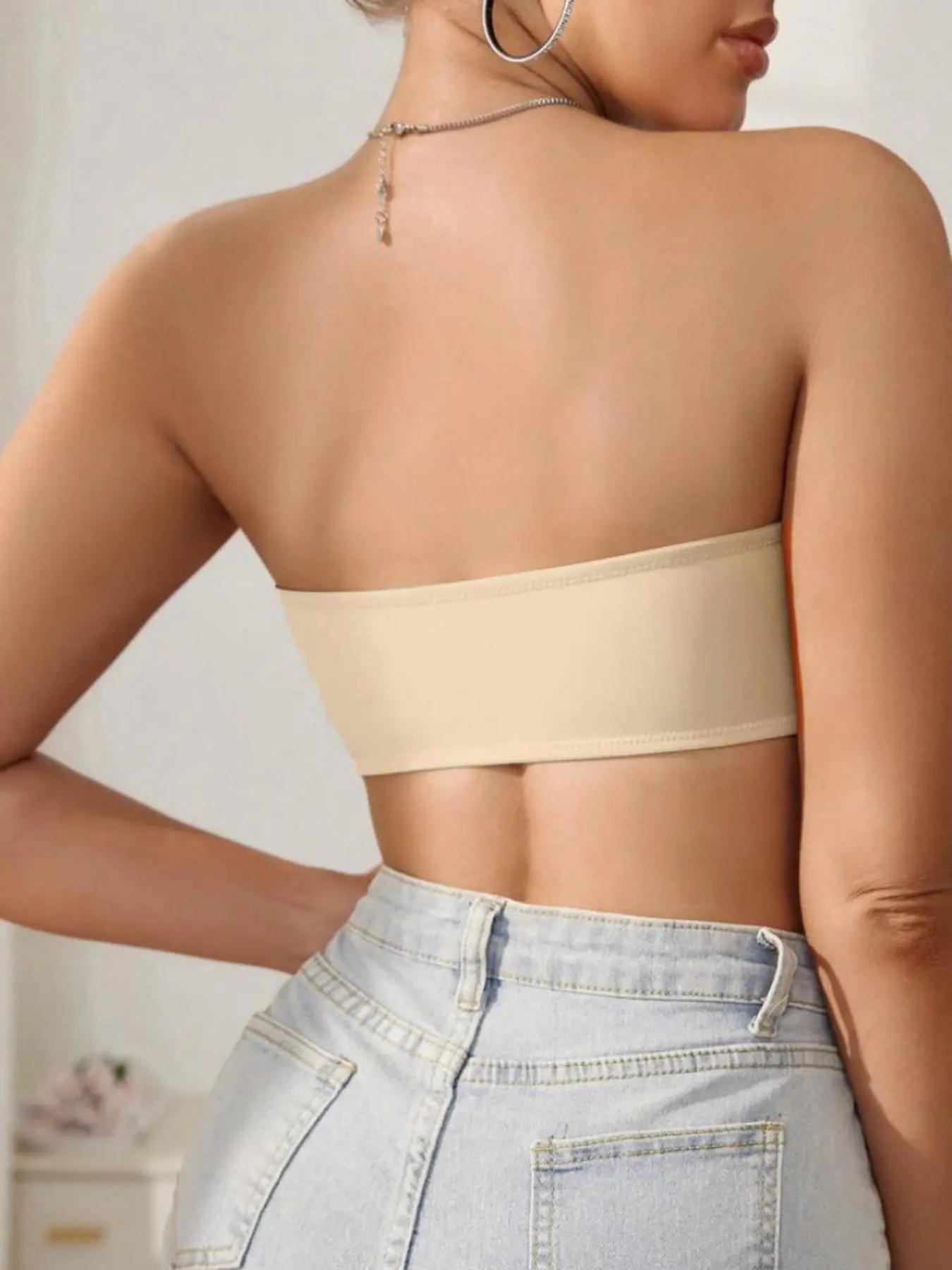 Popilush Seamless Wireless Jelly Bra Strapless V-Neck - Molded Cups Smooth Supportive One-Piece Womens Bra-live