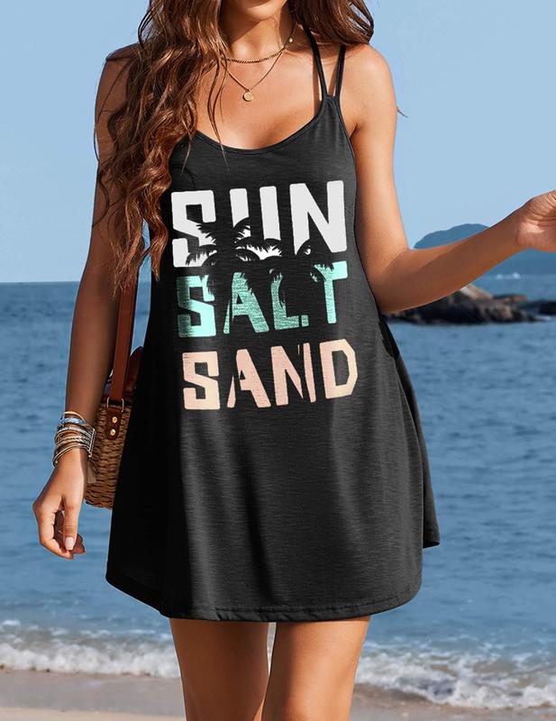 Womens Spaghetti Strap Cover Up Sleeveless Bathing Suit Coverups Backless T Shirt Beach Dress