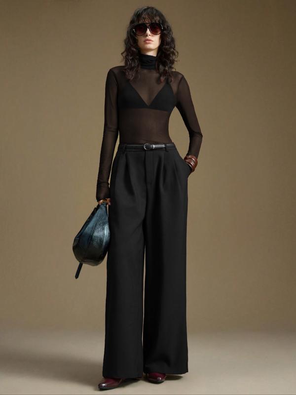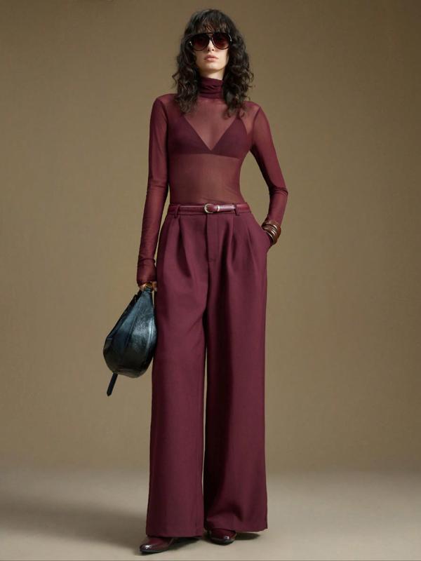 【High-neck Feature】: This top features a chic high-neck design, enhancing your silhouette while adding a touch of allure.