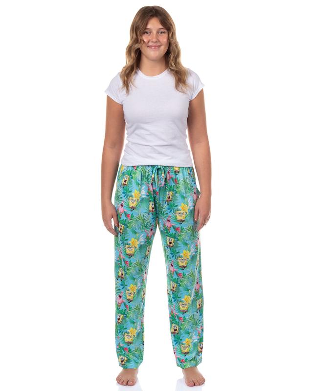 Designed with everyday comfort in mind, these pajama pants feature an elastic drawstring waistband for the right fit and handy side pockets for your must-haves.. When it’s time for a wash, toss them in the machine and tumble dry low. Whether you're watching your favorite shows, relaxing at home, or catching some z’s, these SpongeBob PJs are ready to tag along. Vibrant Character Design: These PJs feature an all-over SpongeBob SquarePants print with Bob and Patrick set against a tropical pattern of leaves and flowers Functional Pockets: Featuring side pockets, these PJs combine practicality with style. Keep small essentials handy while relaxing or sleeping, and enjoy the convenient design that adds function to comfort Comfortable Elastic Waistband: The elastic drawstring waistband offers a secure and adjustable fit for all-day comfort Versatile Wear: Ideal for lounging at home, casual outings, movie marathons, or cozy nights of sleep, these pajama pants are lightweight and breathable Easy Care Fabric: Made of 92% polyester and 8% spandex, these pajama pants are durable and easy to maintain. Simply machine wash in cold water with similar colors and tumble dry on low to keep them soft and vibrant