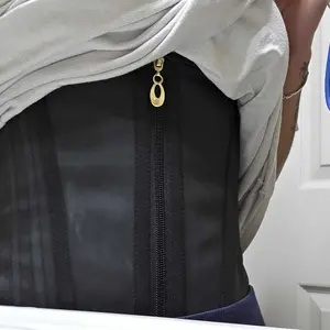 The XS fits perfect. I’m a 30 in the waist and when I just put it on the 1st hook I went down to a 28.5”. I’m hoping by May I will be at the 3rd hook and looking snatched. The material is good quality and the zipper is sturdy. Doesn’t really show through clothing unless it’s tight.