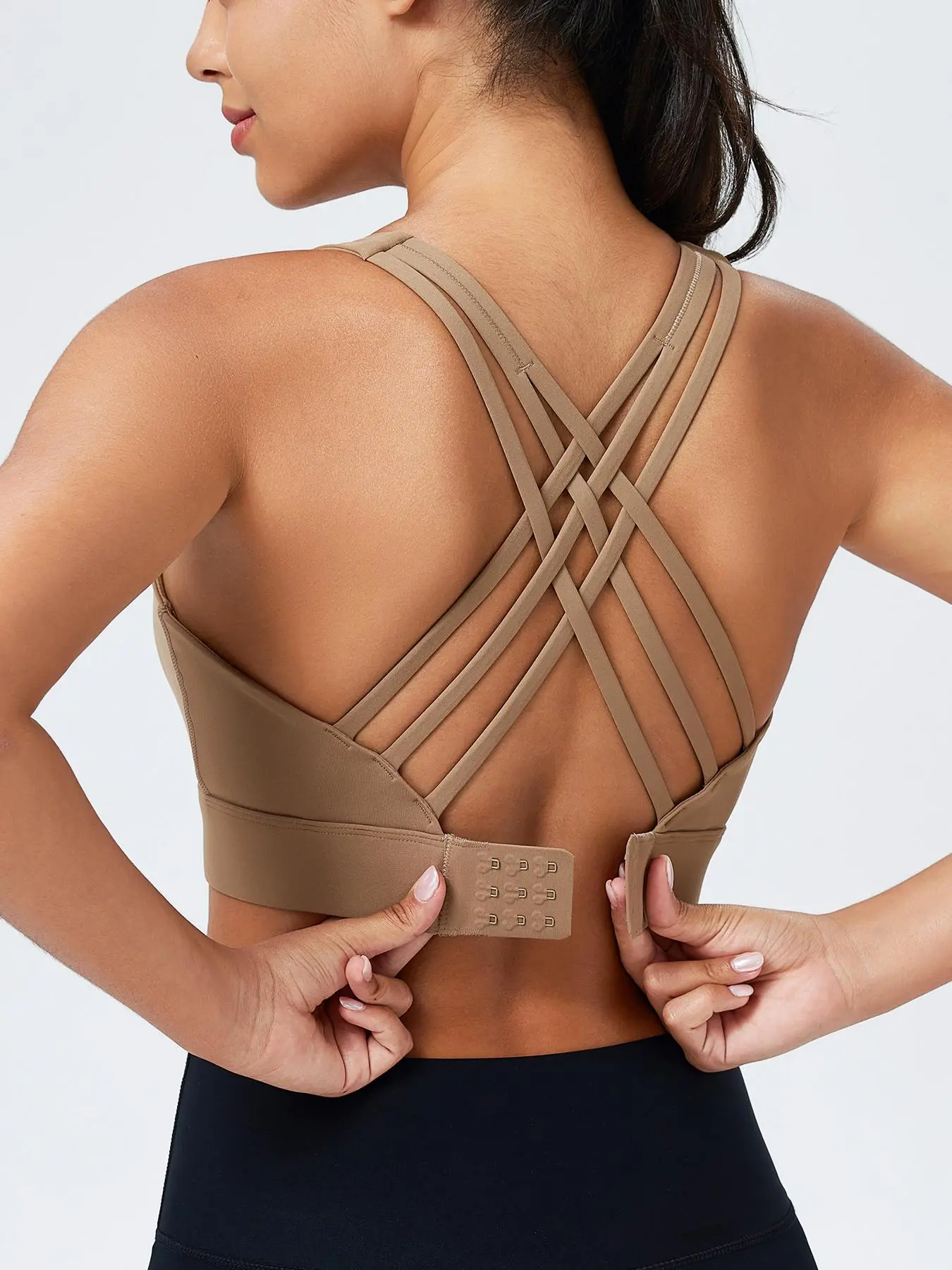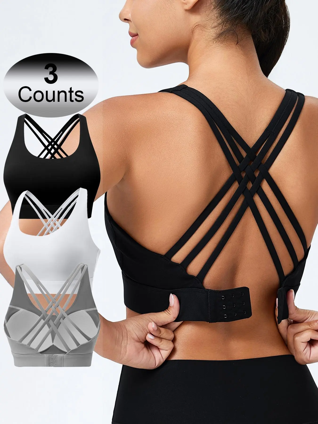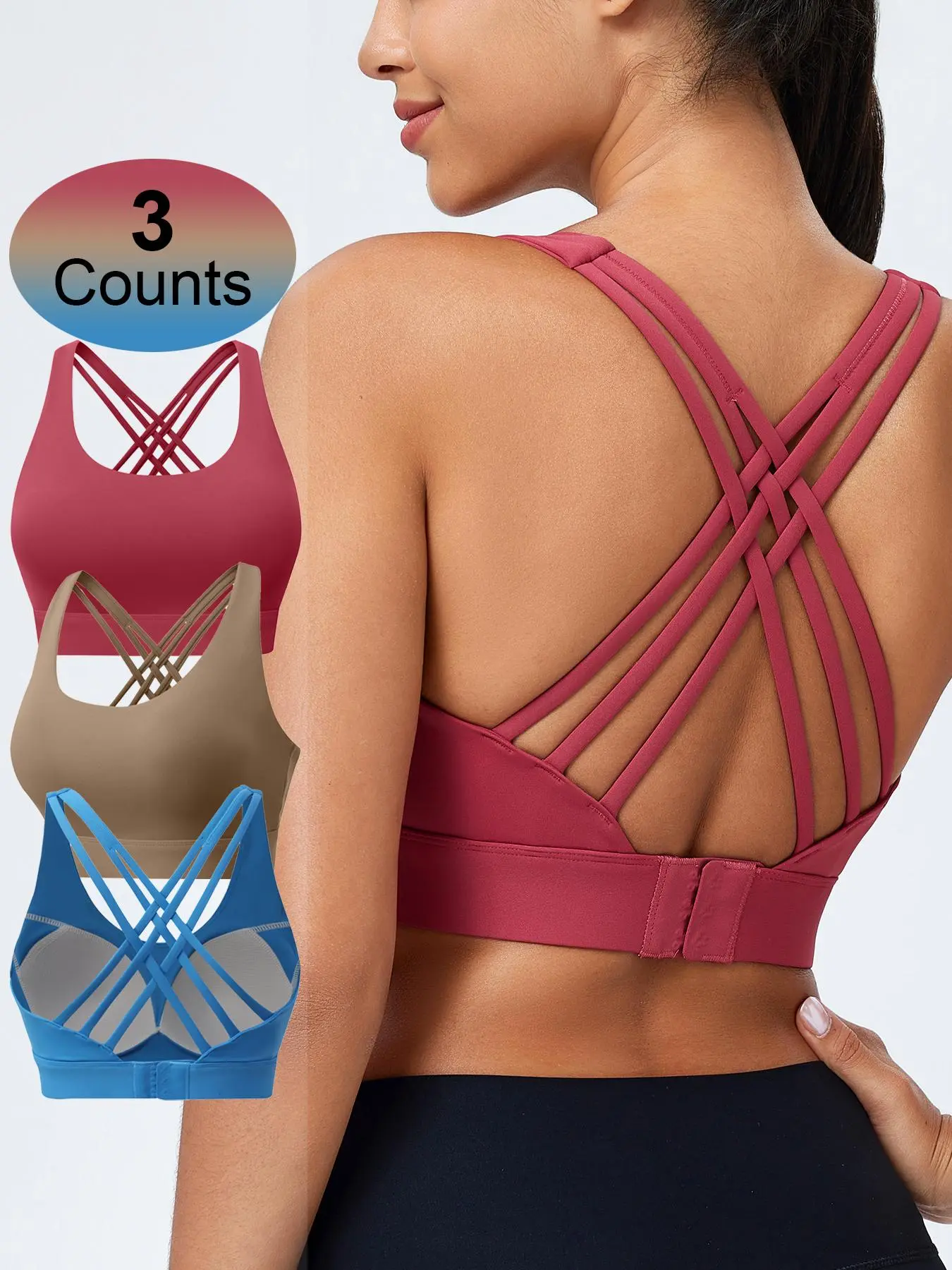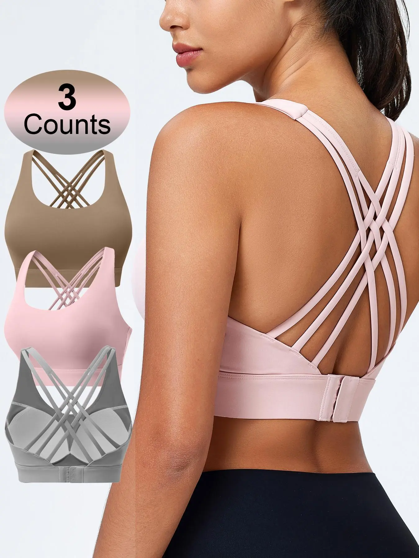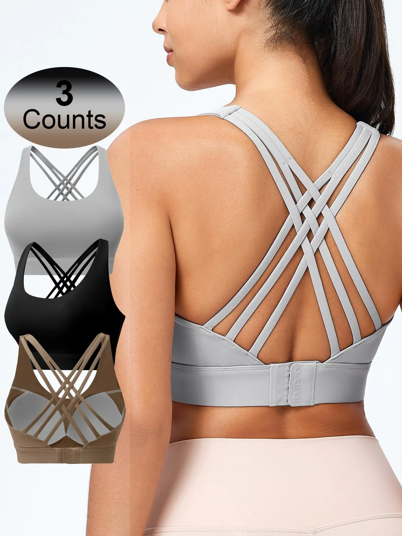 Women's High Impact Sports Bra with Sewn-In Pads, 3 Row Adjustable Back Hook-eye Closure Criss-Cross, Soft and Breathable Non-removable Moulded Cups, Gift for Women, Women's Workout Clothes