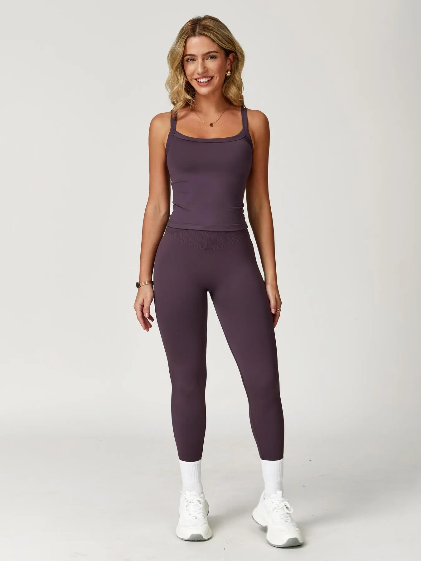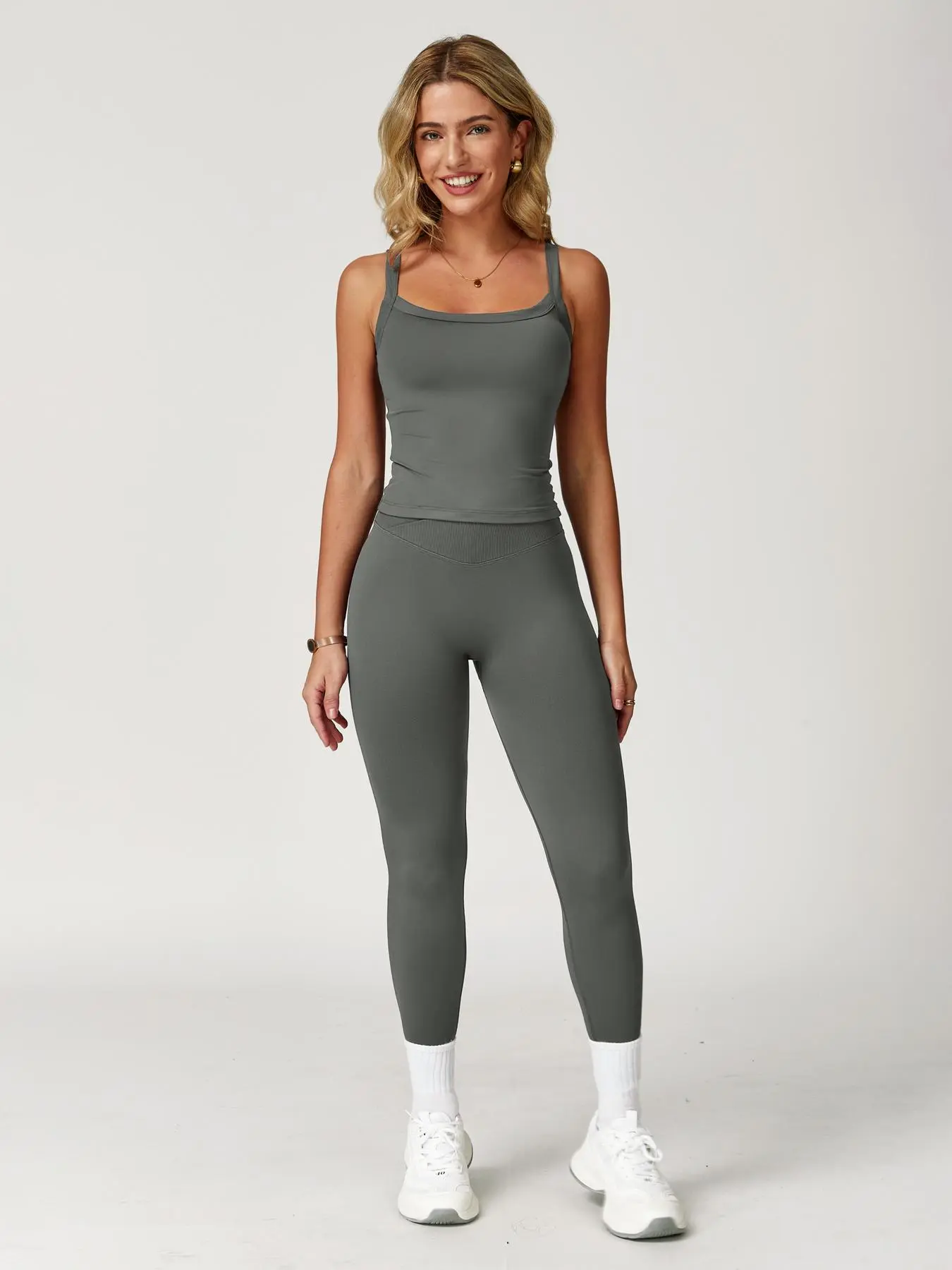Women’s breatheable solid Cami with built in bra work out set 🩶 #workoutsets #builtinbratop #buttliftingleggins