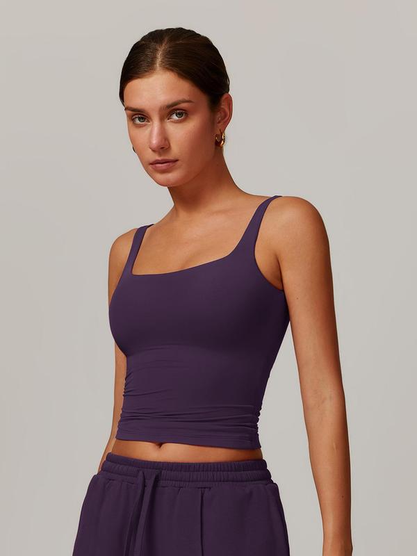 Women's Solid Color Sports Singlet with Built-In Bra Cups, High Stretch Comfortable Breathable Quick Drying Sports Bra for Yoga Gym Workout Fitness, Ladies Sportswear for Indoor Outdoor Wear