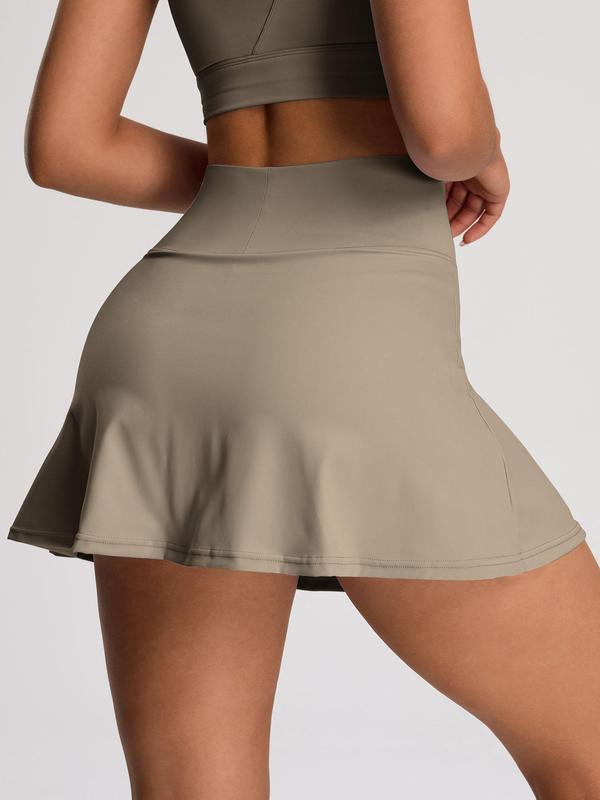 Women's Solid Color High Waist Sports Skort, Sporty Overlap Waist Mini Skirt with Panty, Ladies Sportswear for Tennis Golf Workout, Lightweight Athletic Skirts