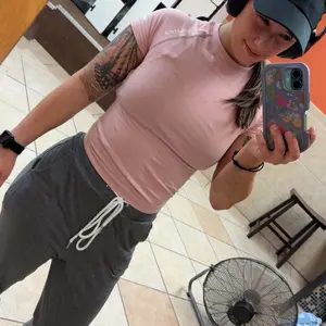 was excited for these shirts. finally tried them on and they’re just meh. granted, i’m not a gym girlie anymore, but i’d like to get back in there. but this shirt has weird lines in the materiel on the back and the chest, like the fabric is messed up/stretched out or something. cute but dissatisfied
