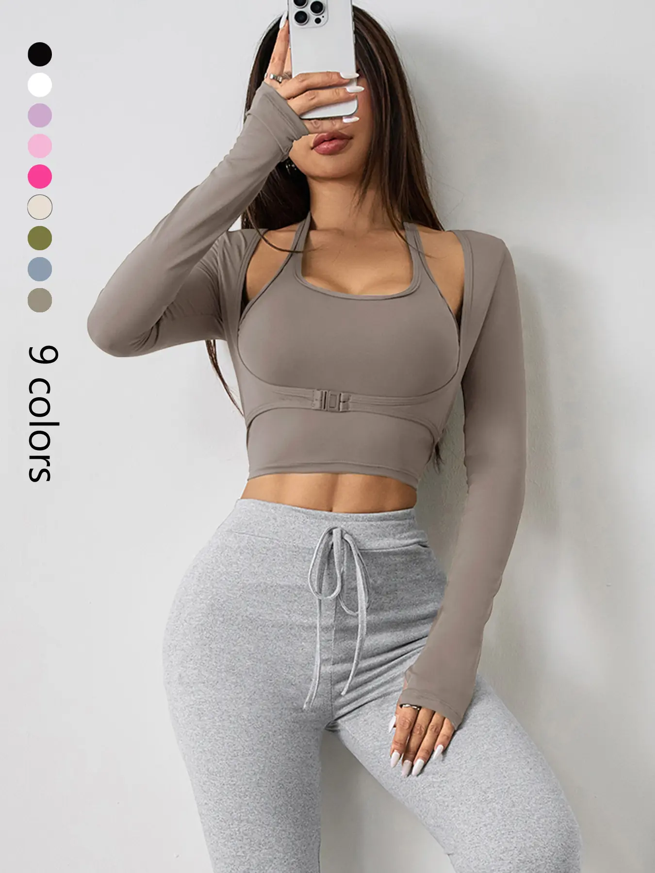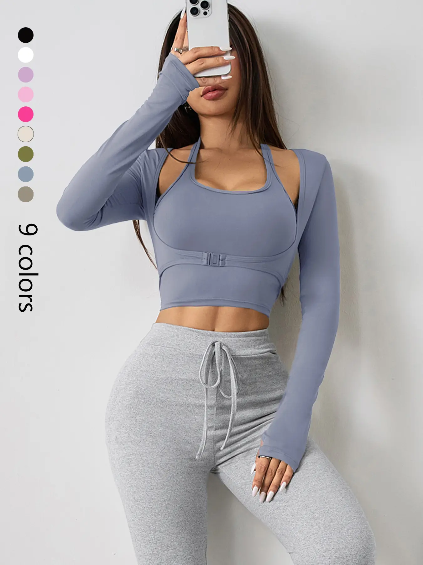 Top Deportivo 2 en 1 con Manga Larga y Orificio para Pulgar #WorkoutTop #GymOutfit #YogaTop #gymtop #TikTokShopCreatorPicks