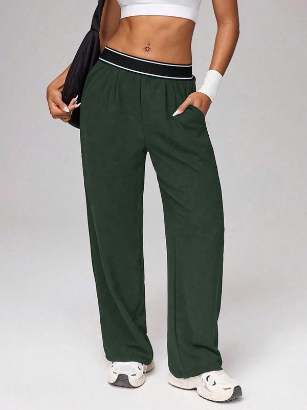 Women's Sporty Pants Long Comfortable Wide Leg Design with Pockets, Ideal for Exercise, Stylish & Practical Workout Wear, Athleisure Bottoms