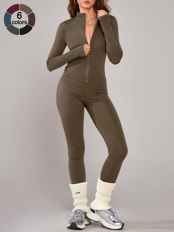 Women's Sporty Yoga Set, High Waist Tight-Fitting Pants, Breathable Long Sleeve Jacket, Fall & Winter Gym Outdoor Running, Yoga Clothes Set