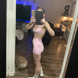 SO obsessed with this set! I got it in both red and pink and love the fit of it. I’m 5’5” and 125 pounds for reference and got a size XS. The bay pink bottoms can be a little transparent with dark underwear, but they were perfectly fine with light washed ones!