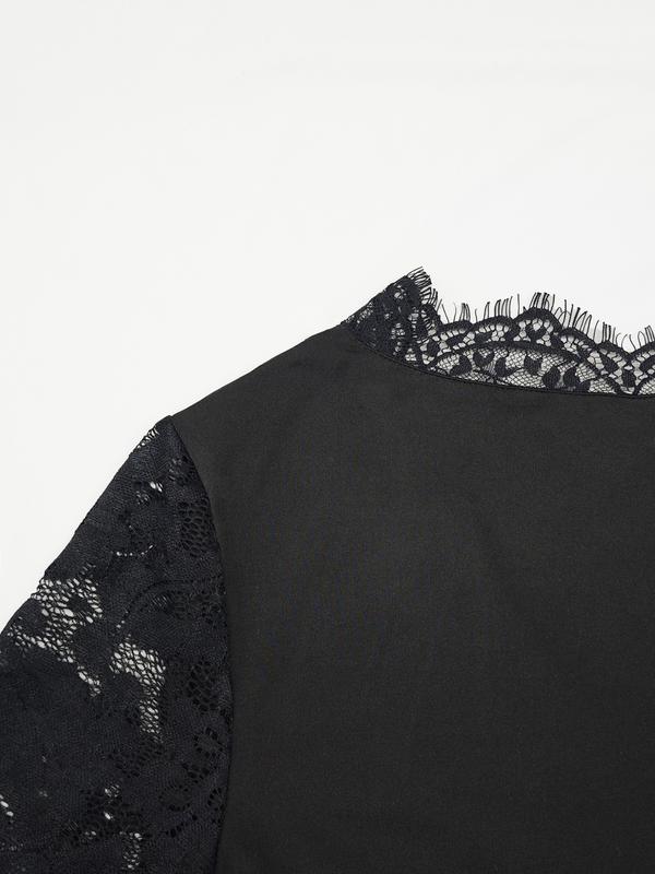 "POV: You're trying to find that top that's sophisticated enough for dinner, but comfy enough for everyday chic. Found it. 😉 Stop scrolling! Meet your new wardrobe obsession: Our stunning Lace Trim V-Neck Top! This isn't just a top; it's your secret weapon for instant confidence and effortless elegance, no matter the occasion. Here's why you NEED this must-have top: 🔥 Sultry & Sophisticated: The deep V-neckline with delicate lace trim adds a touch of allure without being too much. Get ready for compliments! ✨ Chic Details: Beautiful sheer lace sleeves elevate this top from basic to beautiful, making every movement graceful. 💖 Figure-Flattering Fit: Designed with a slim, ruched silhouette that hugs your curves in all the right places, giving you that 'snatched' look. 👗 Effortless Versatility: Dress it up with a skirt and heels for a night out or down with jeans for a chic casual vibe. Your go-to for spring, fall, and beyond! 🧵 Comfort Meets Style: Made from a soft, elastic knit that moves with you, so you never have to sacrifice comfort for fashion. Ready to elevate your everyday and night-out looks? Tap the link to snag yours before they're gone! 👇 #FYP #LaceTop #VNeckTop #BlackTop #LongSleeveTop #SlimFit #RuchedTop #ChicStyle #ElegantFashion #SophisticatedStyle #CasualClassy #DateNightOutfit #GoingOutTop