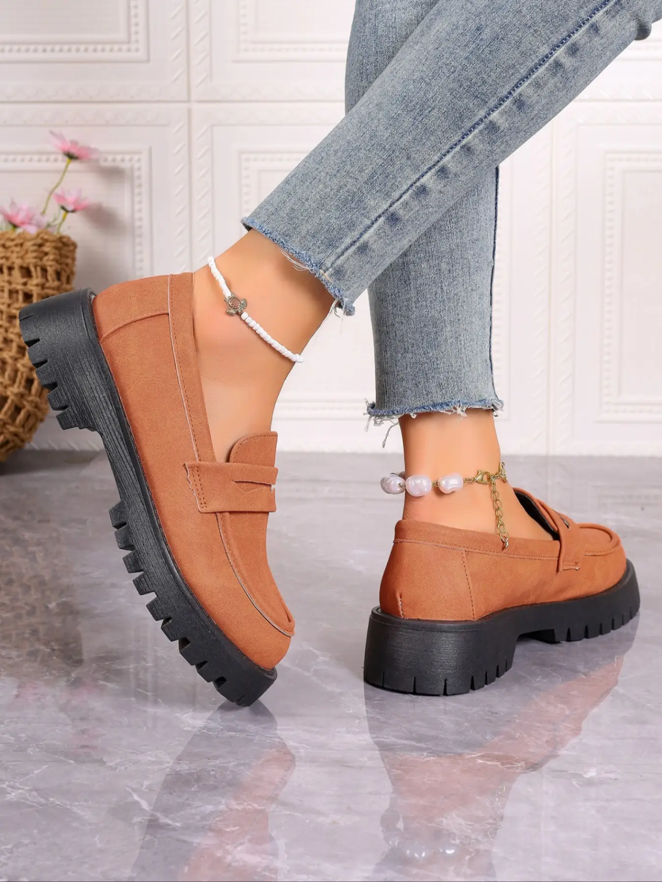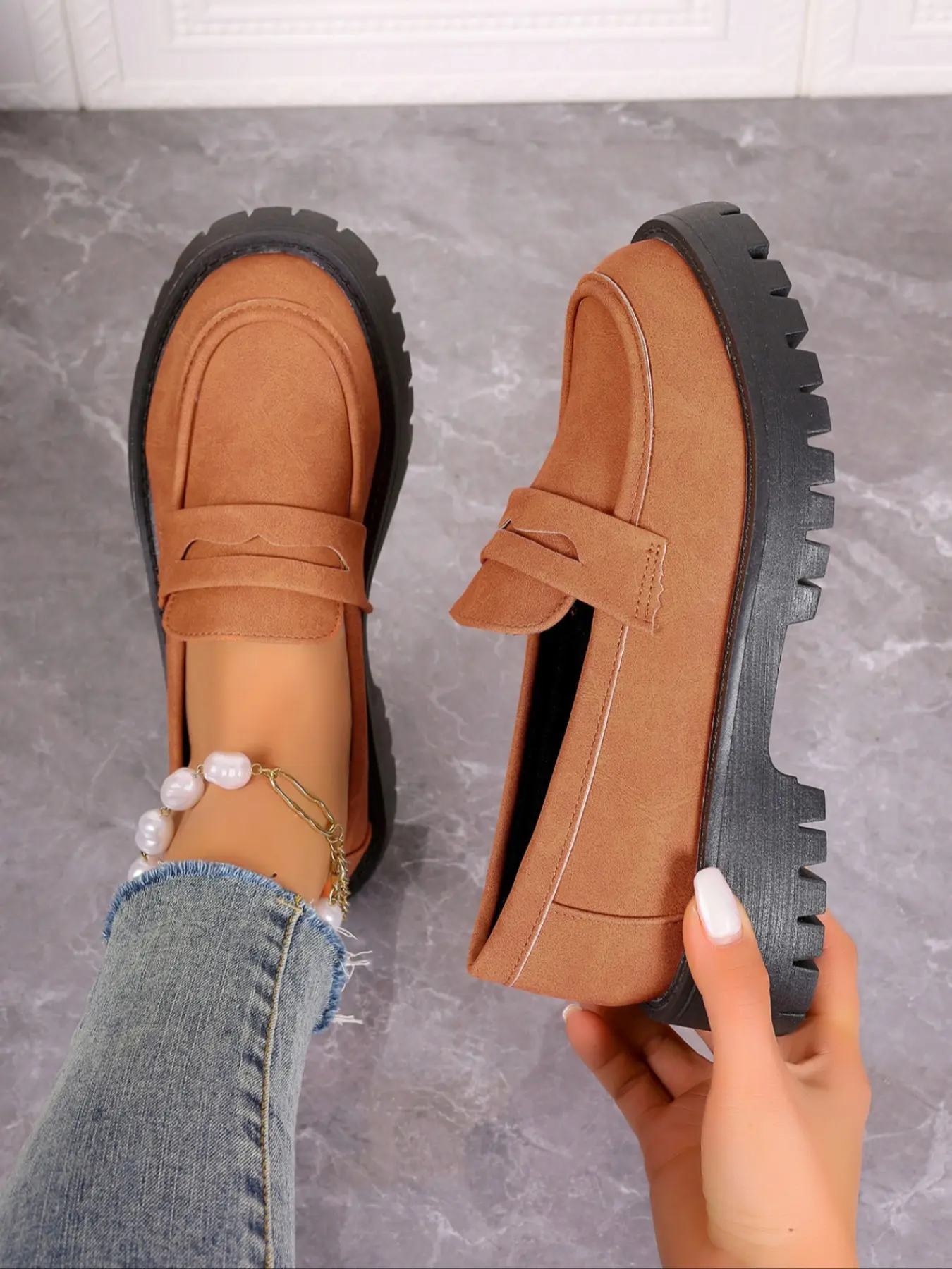 5. Women's Spring Summer New Thick Sole Single Shoe, One-Step Wide Foot Loafer, Flat British Style Small Leather Shoes, Casual Daily Wear