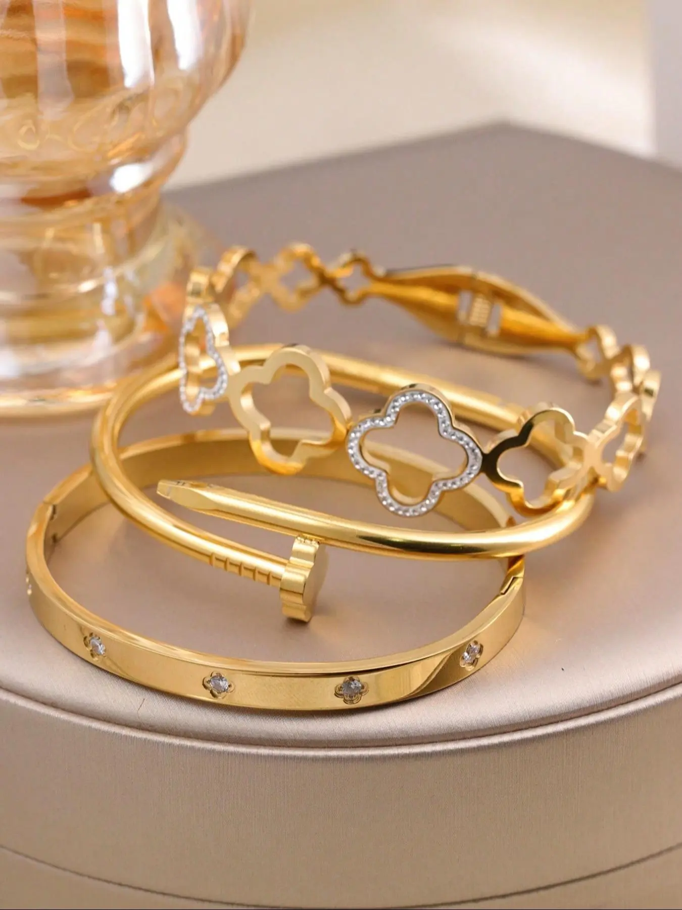 Love the weight of these bracelets and how easy they can fit on the wrist. Super cute set.