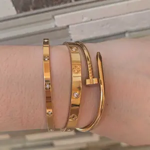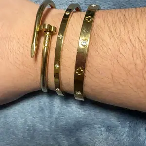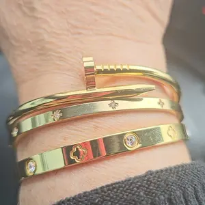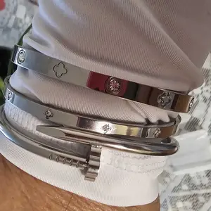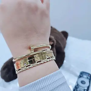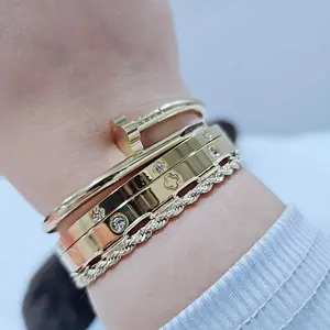 Women's Stainless Steel Bracelet Set, Flower Nail Design , Casual Style Jewelry for Women, Perfect Gift for Her, High Quality Bracelet