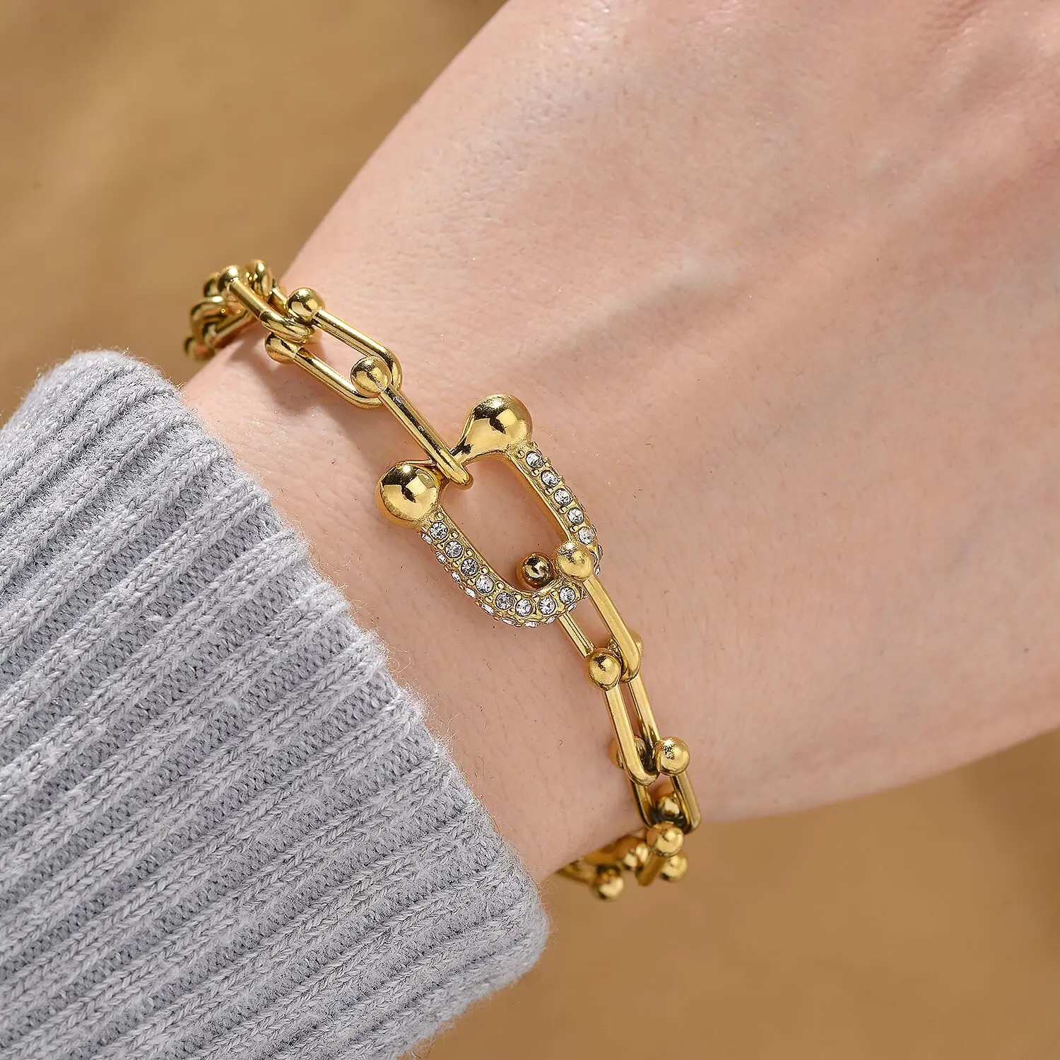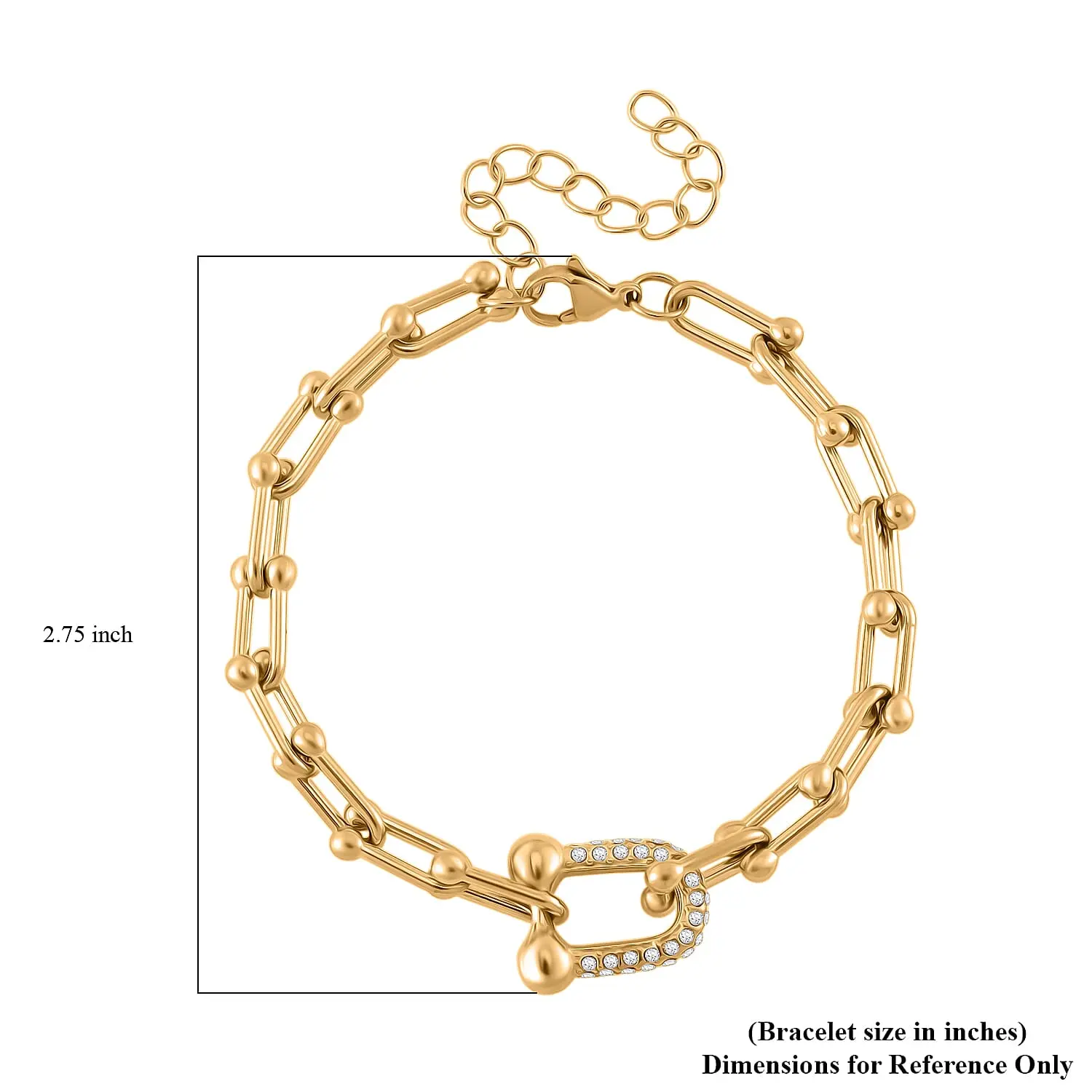 5. White Crystal U Link Horseshoe Bracelet in ION Plated YG Stainless Steel 7.5-9.5In Christmas Gifts