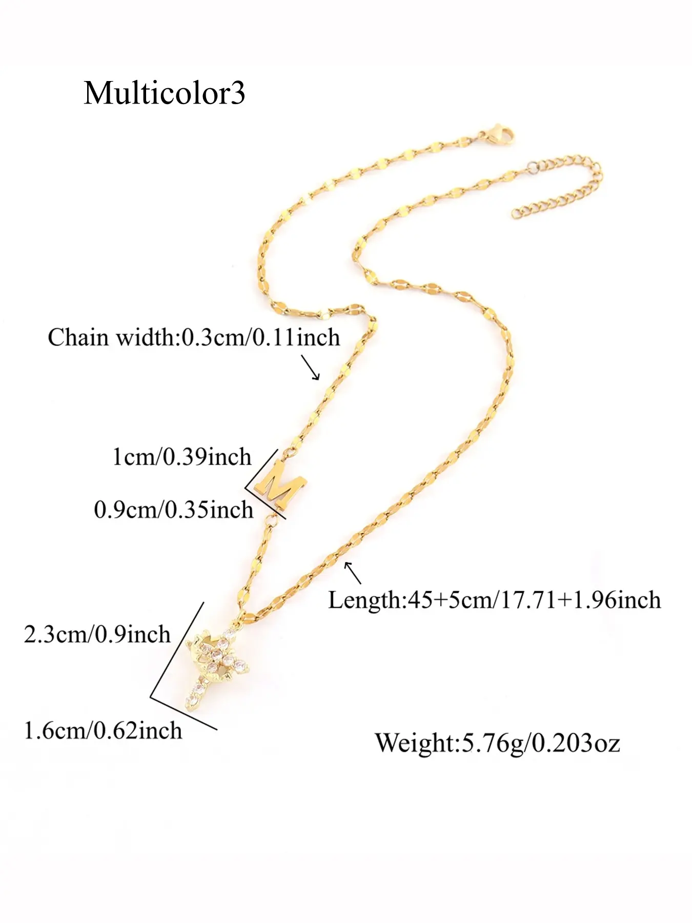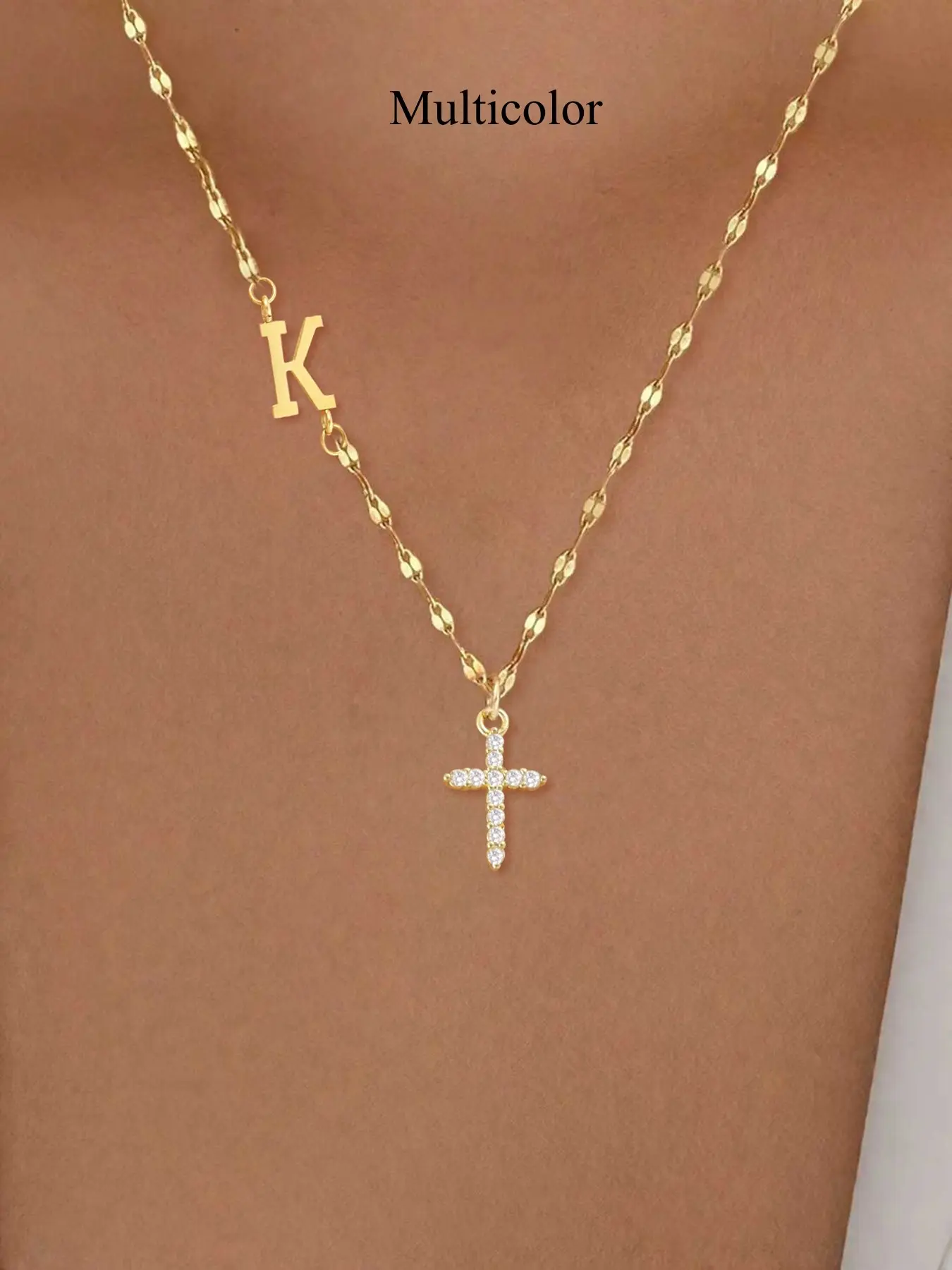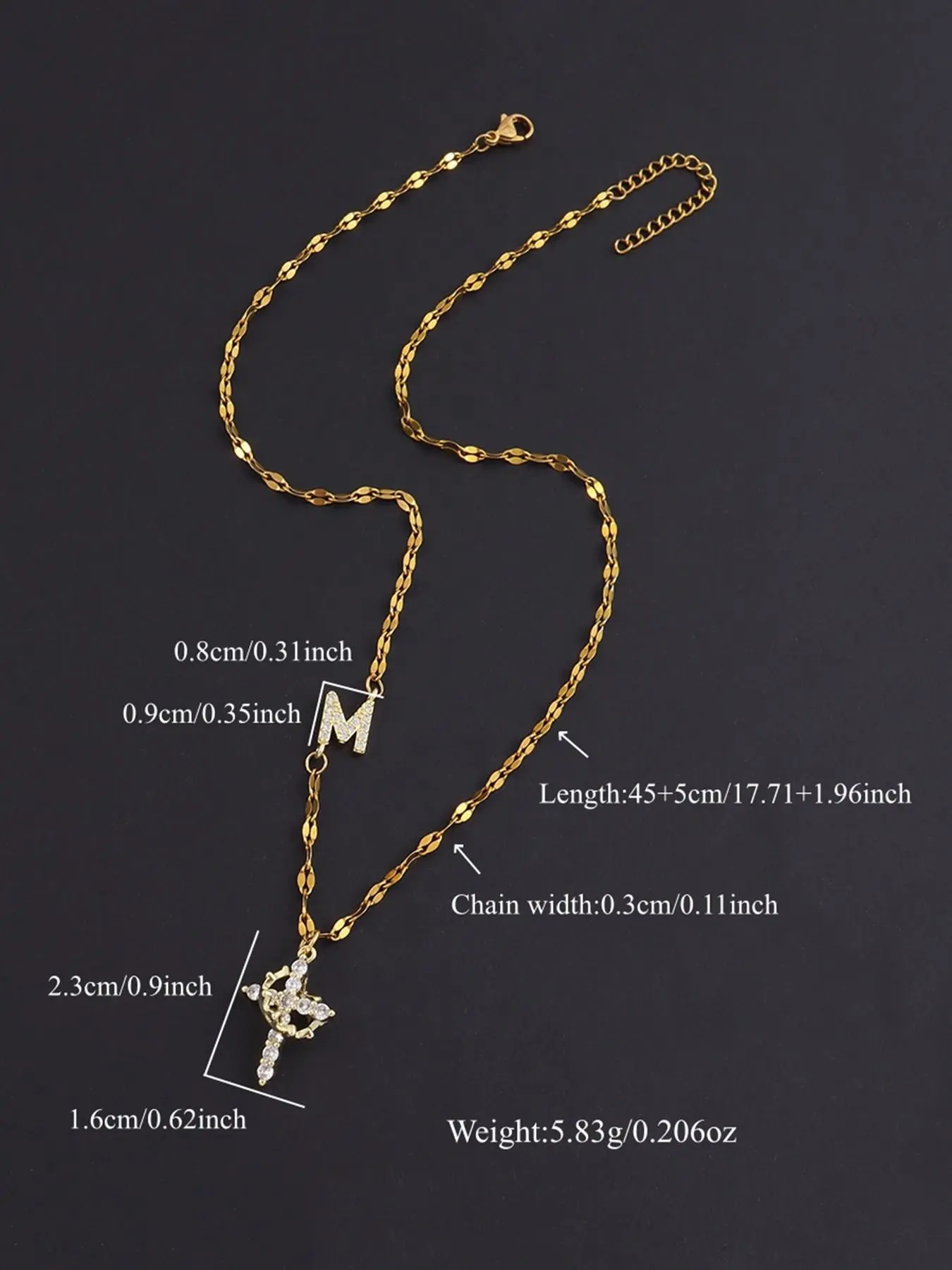 Beautiful necklace the quality is great the cross and the crown excellent and the initial Beautiful.