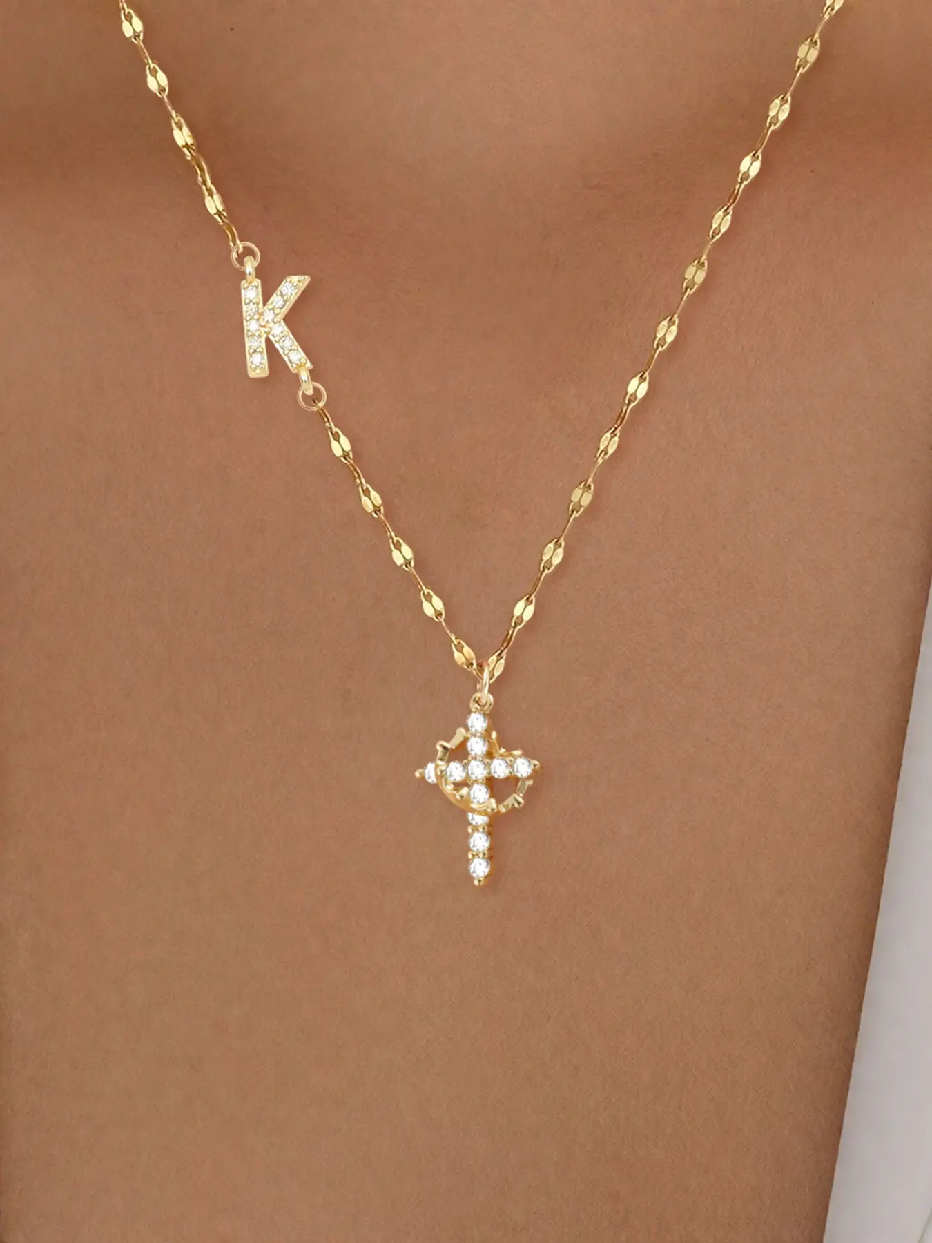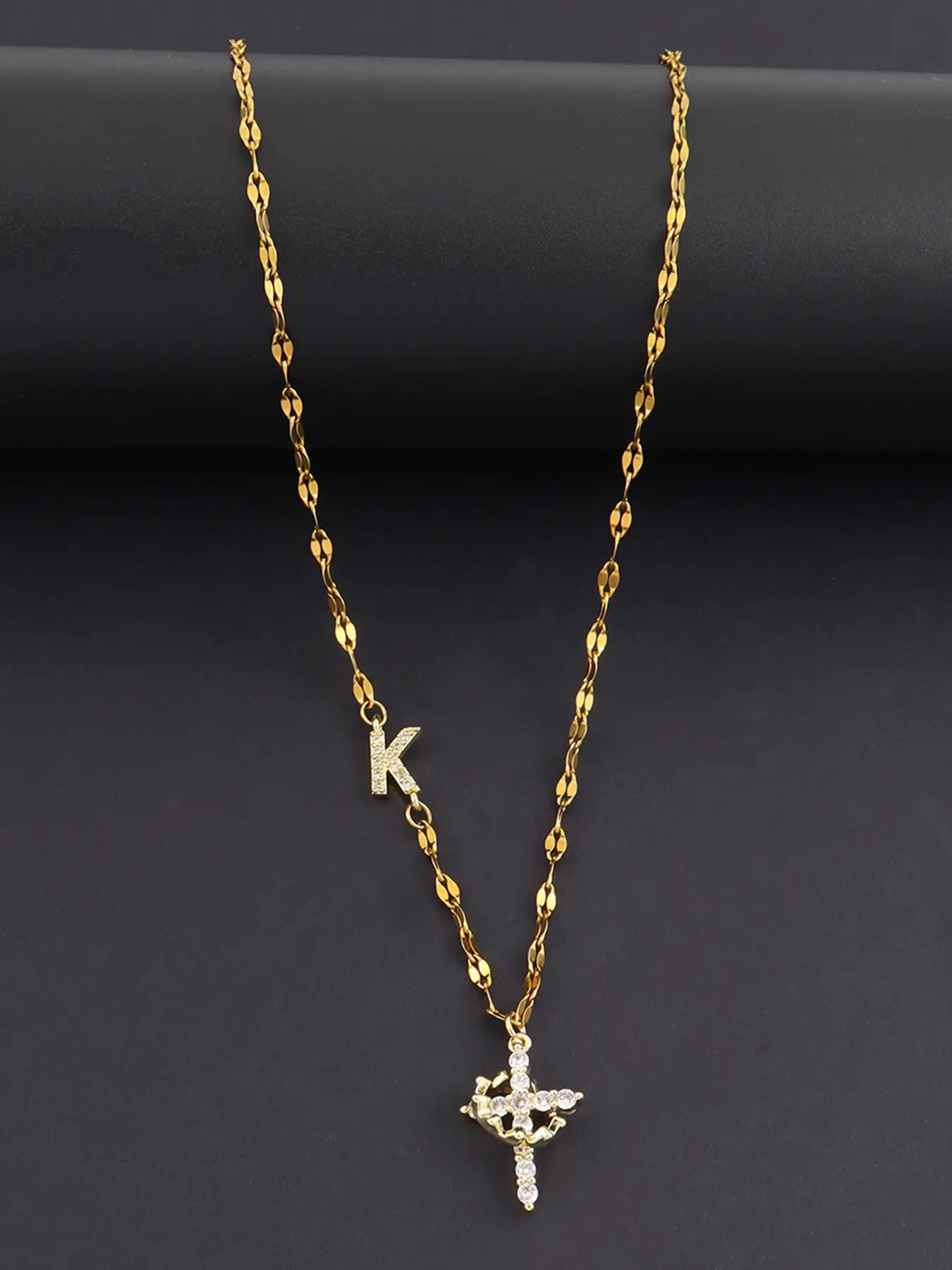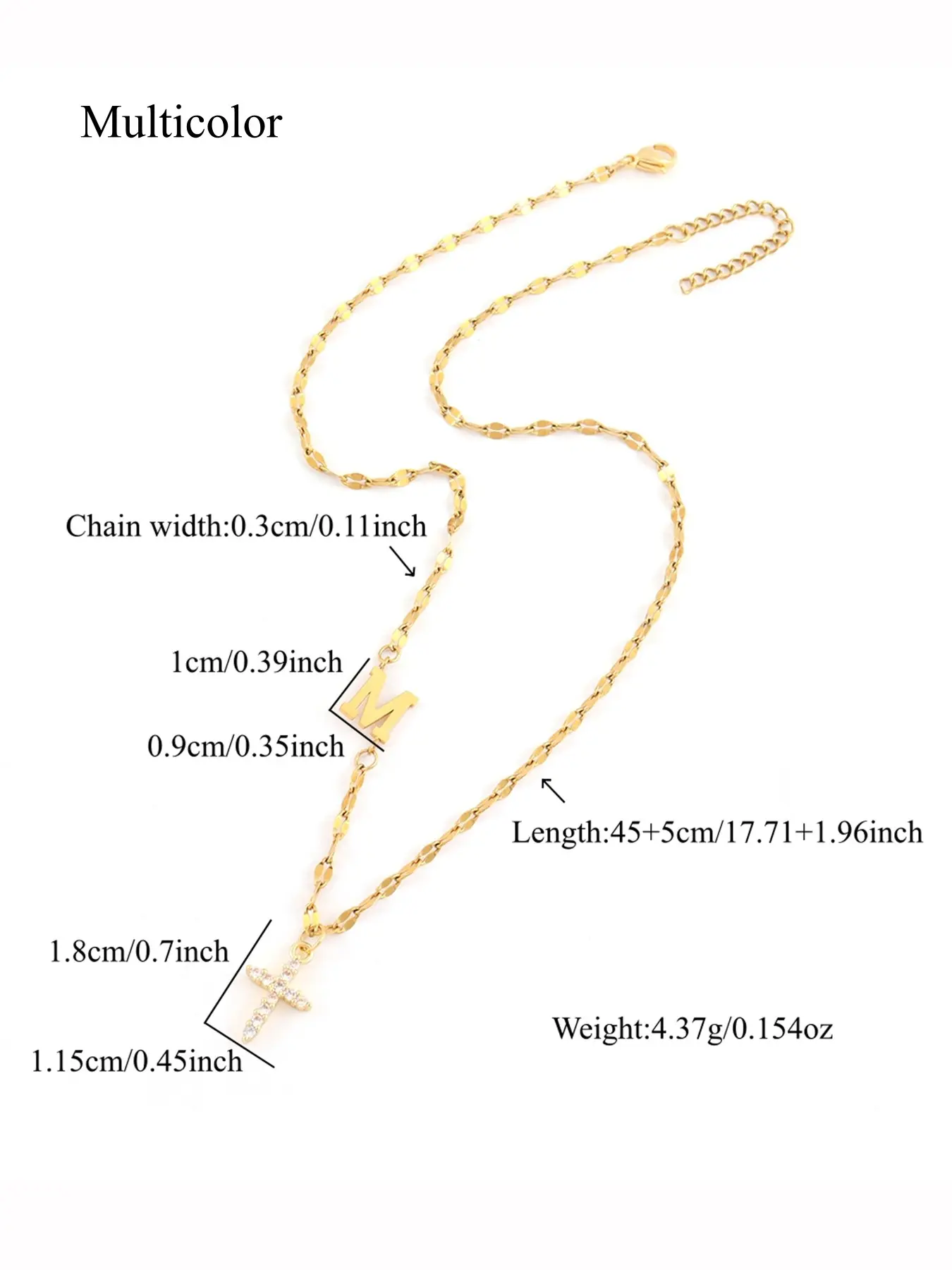 Beautiful necklace the quality is great the cross and the crown excellent and the initial Beautiful.