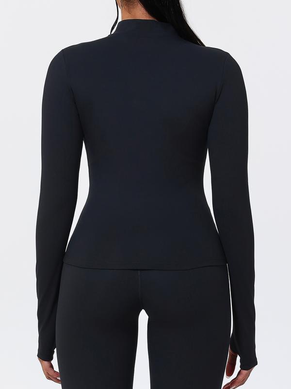 5. Women's Stand Collar Zipper Yoga Jacket, Windproof Slim Fit Long Sleeve Running Outerwear, Pockets Design, Polyester Spandex Fabric Only Jacket,jackets for women, Sports Yoga Jacket