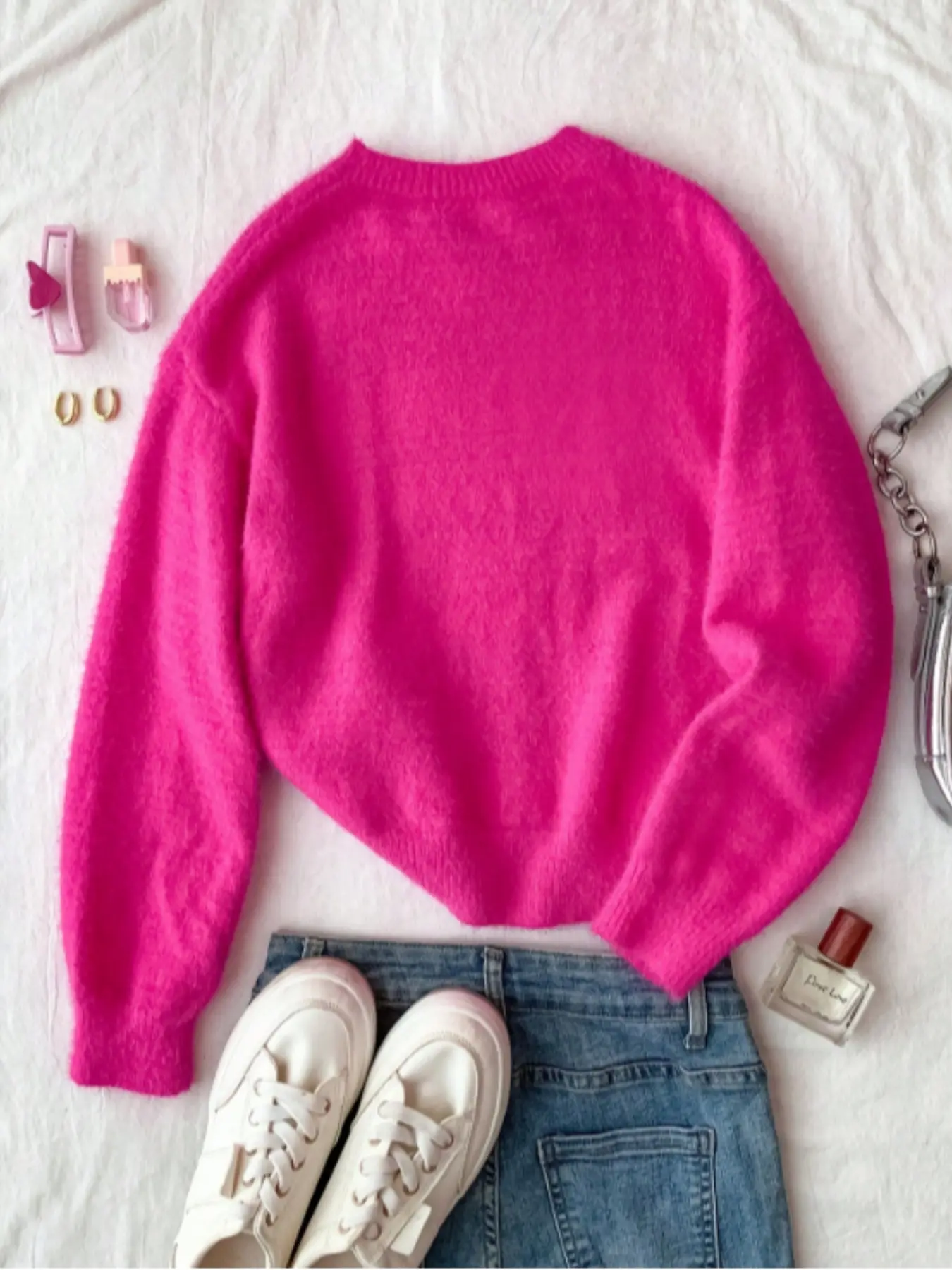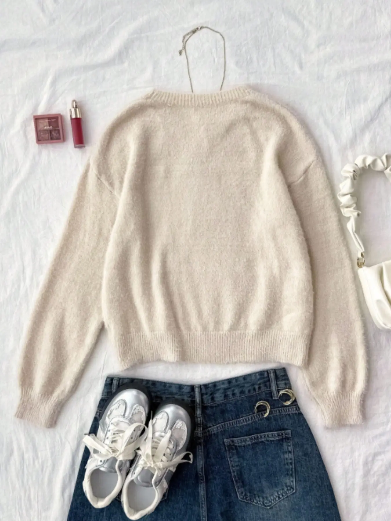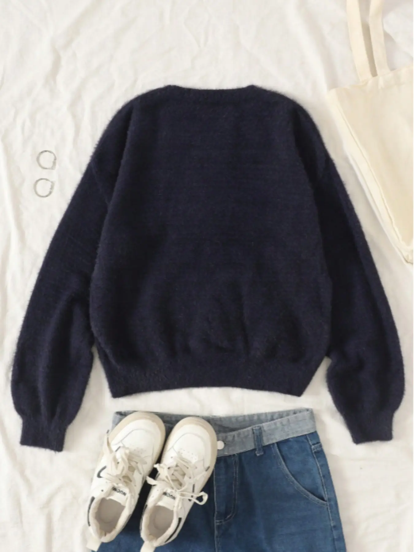 【Soft Knit】: Made from soft and fluffy knit fabric, this pullover provides a cozy feel perfect for chilly days.