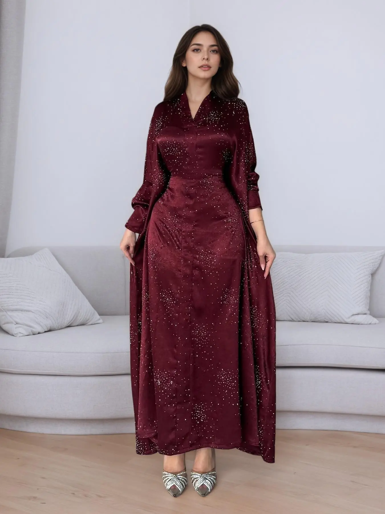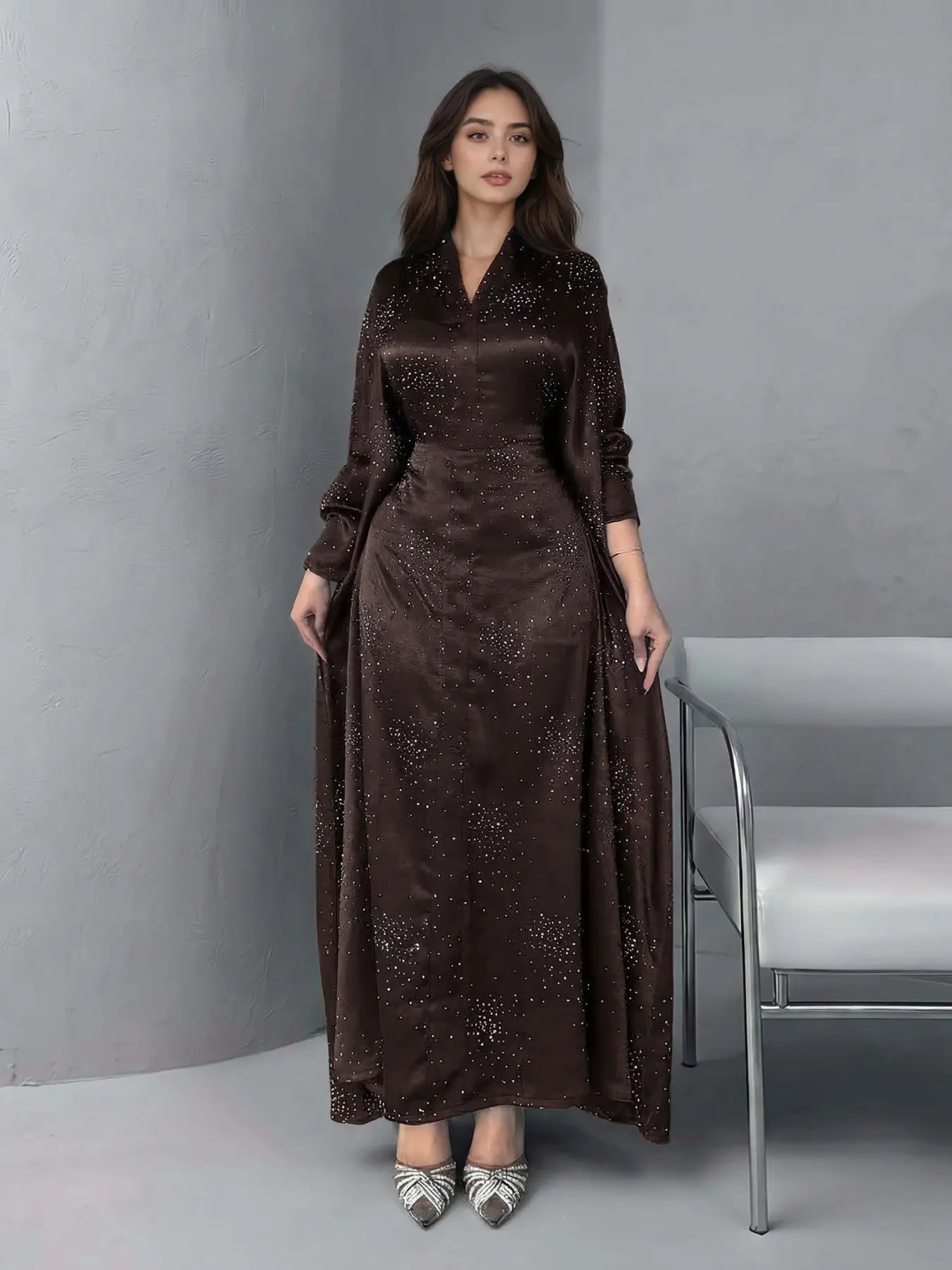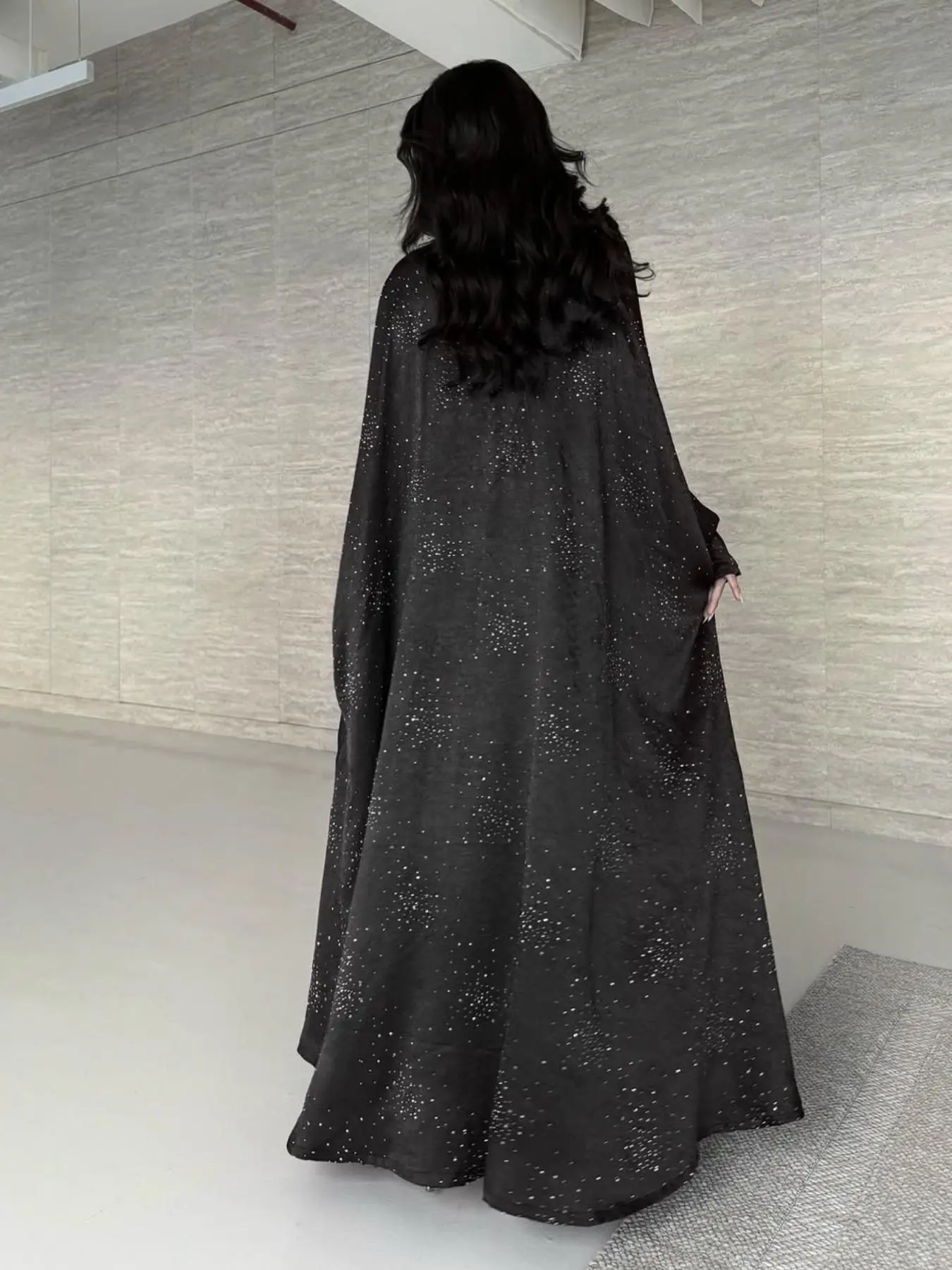 This abaya is modesty and elegance combined!!🧕🤩🕌👗🖤✨✨ #abaya #dress #batwingsleeve #abayadress #rhinestones  #abayafashion  #modestfashion  #tiktokmademebuyit  #tiktokshop  #spotlightfinds