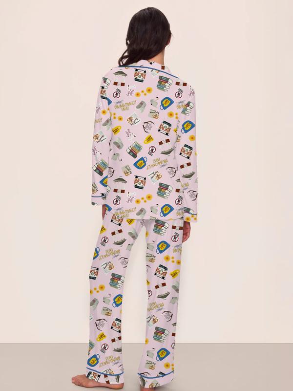 5. Women's Stars Hollow GG book Pajama Set, Long Sleeve Top & Elastic Waist Pants, Casual Fall Winter Sleepwear, Book and Coffee Cup, Loungewear