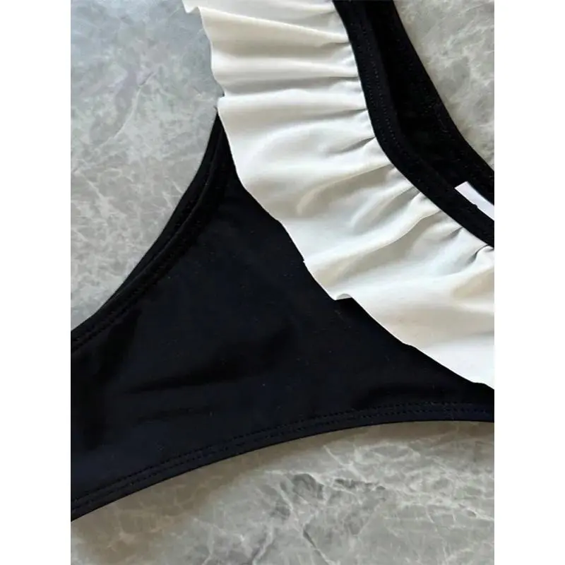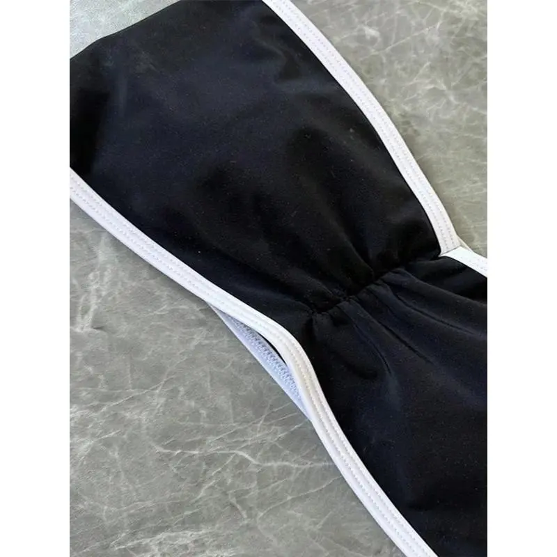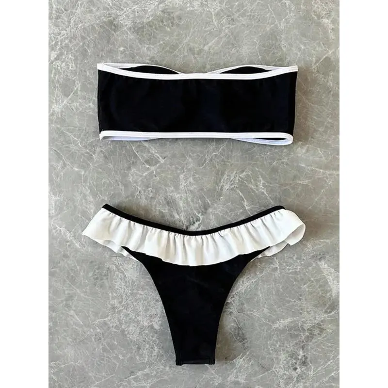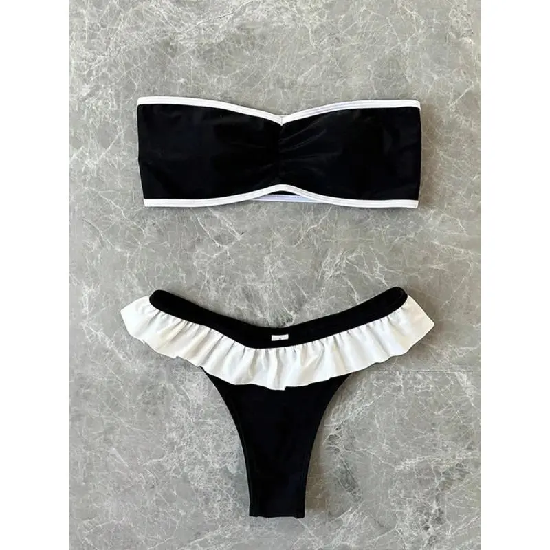 Women's Strapless Swimsuit 2-piece Suit Solid Color Patchwork Push Up Ruffle Thong Beach Hot Spring Bikini Set New Swimwear bandeau bathing top