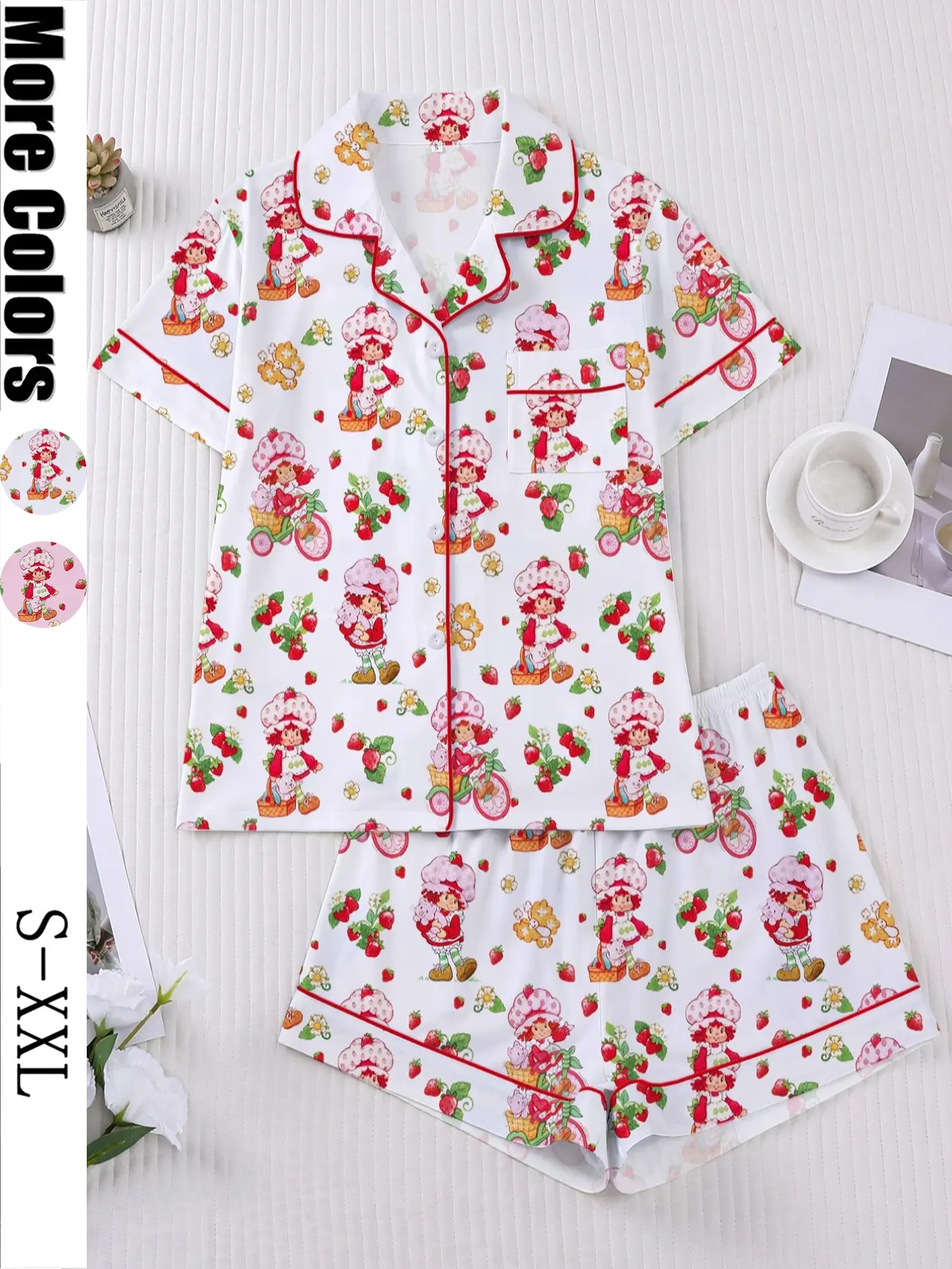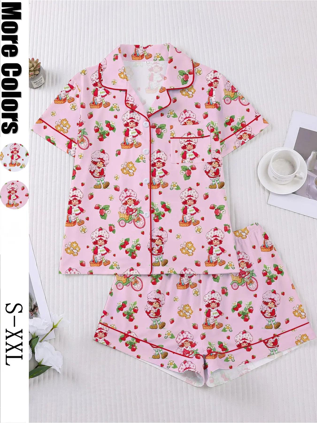 I absolutely love the strawberry shortcake. I got so many compliments on it. My video got a lot of use everybody asking where I got it. The material is very comfortable. It’s almost like a silk cotton. It is true to size and it works well with menopausal women because I’m in menopause and it’s not