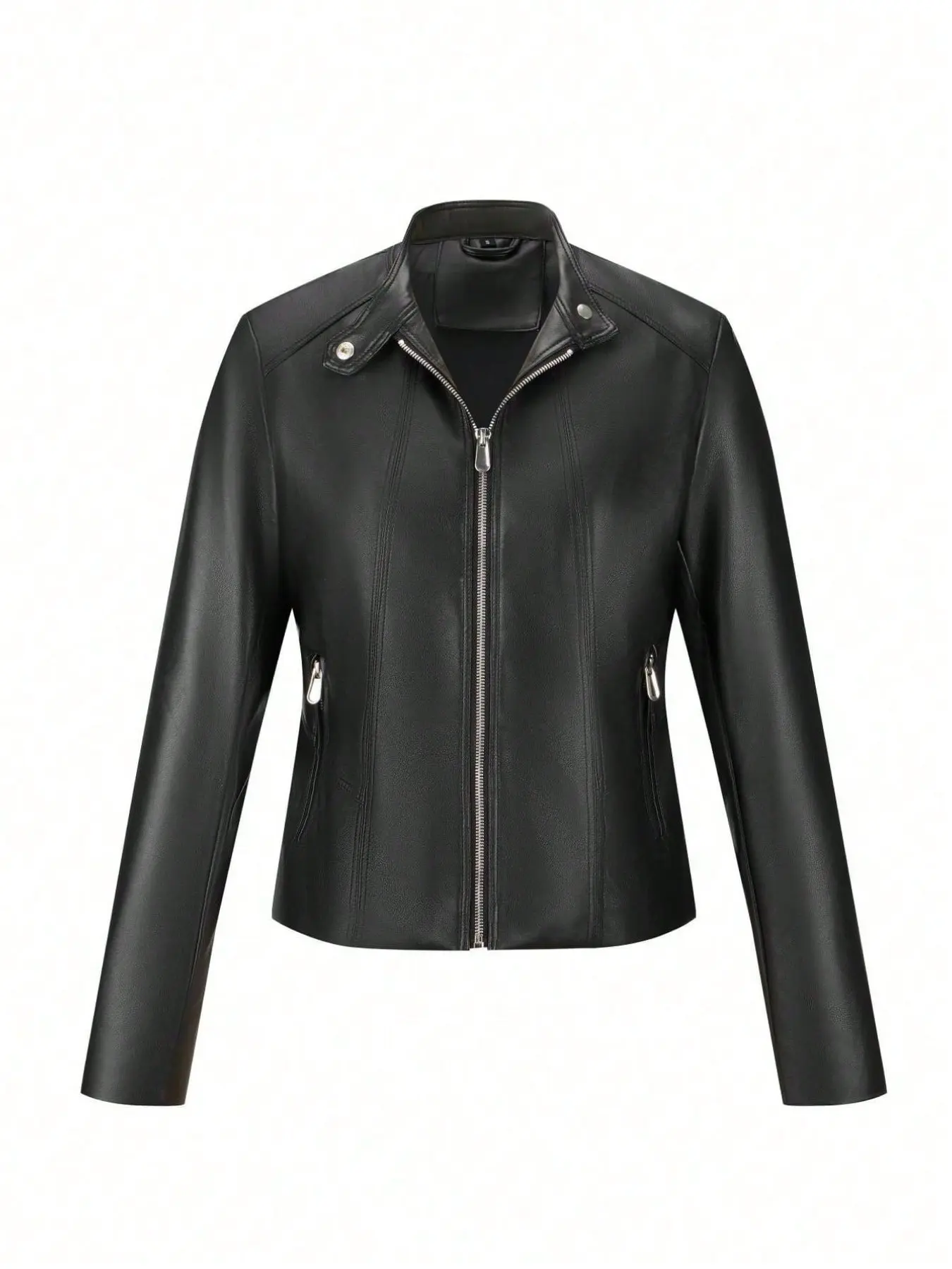women's street style pu leather jacket, spring & fall fashion outerwear, zipper pocket design, fitted medium weight coat#tiktok #tiktokshop #tiktokmademebuyit #women #jacket