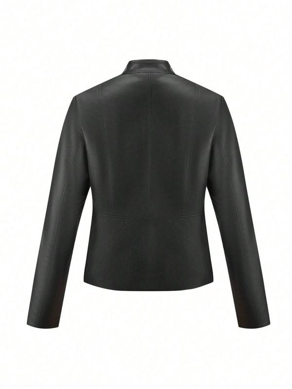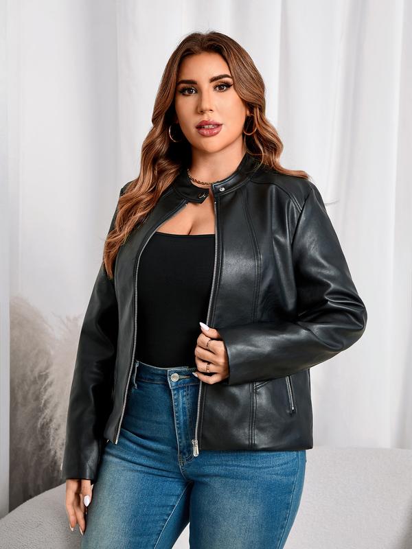 Women's Plus Size PU Leather Jacket, Street Style Biker Coat with Zipper Pockets, Fall & Winter Fashion Outerwear