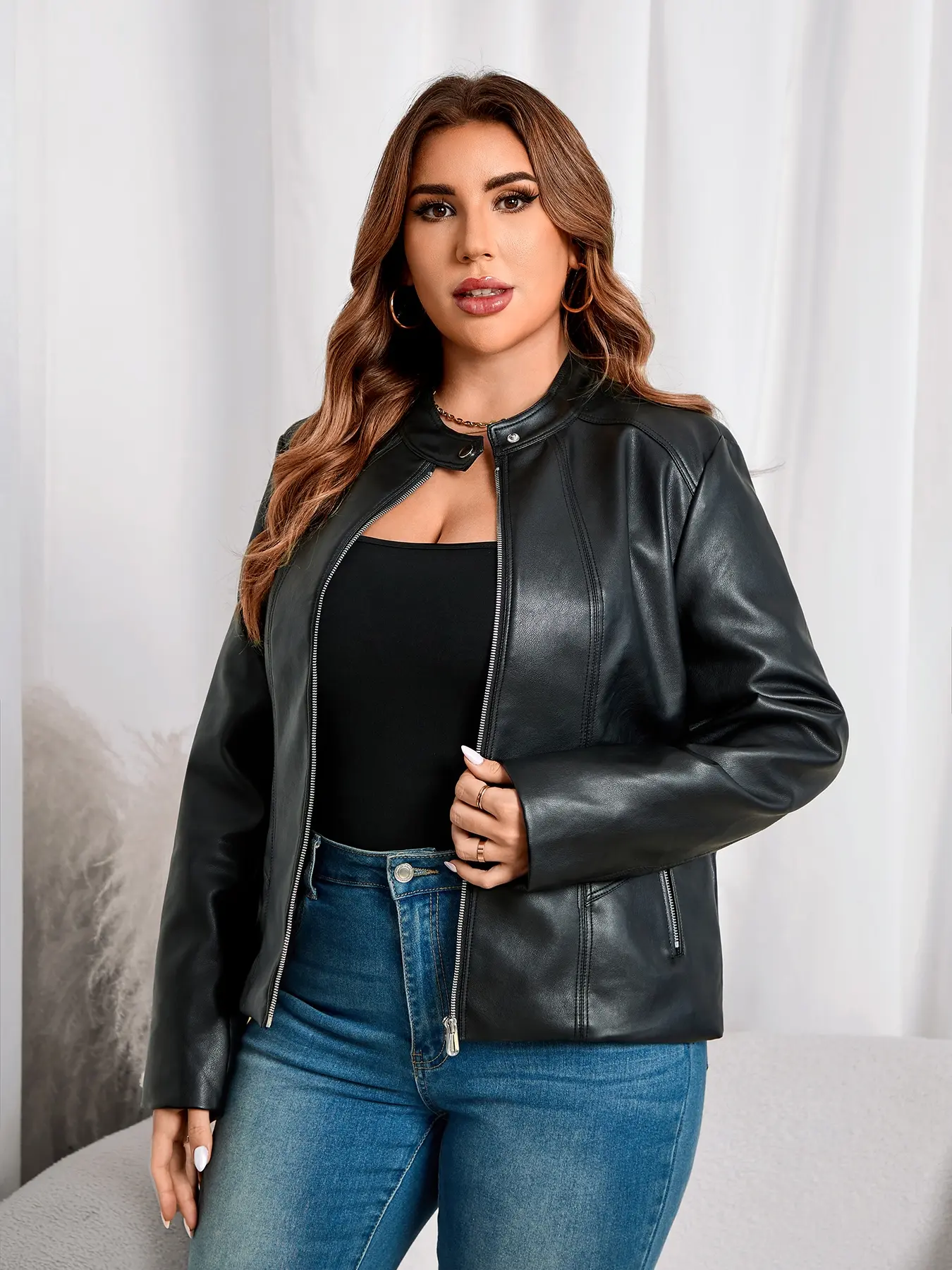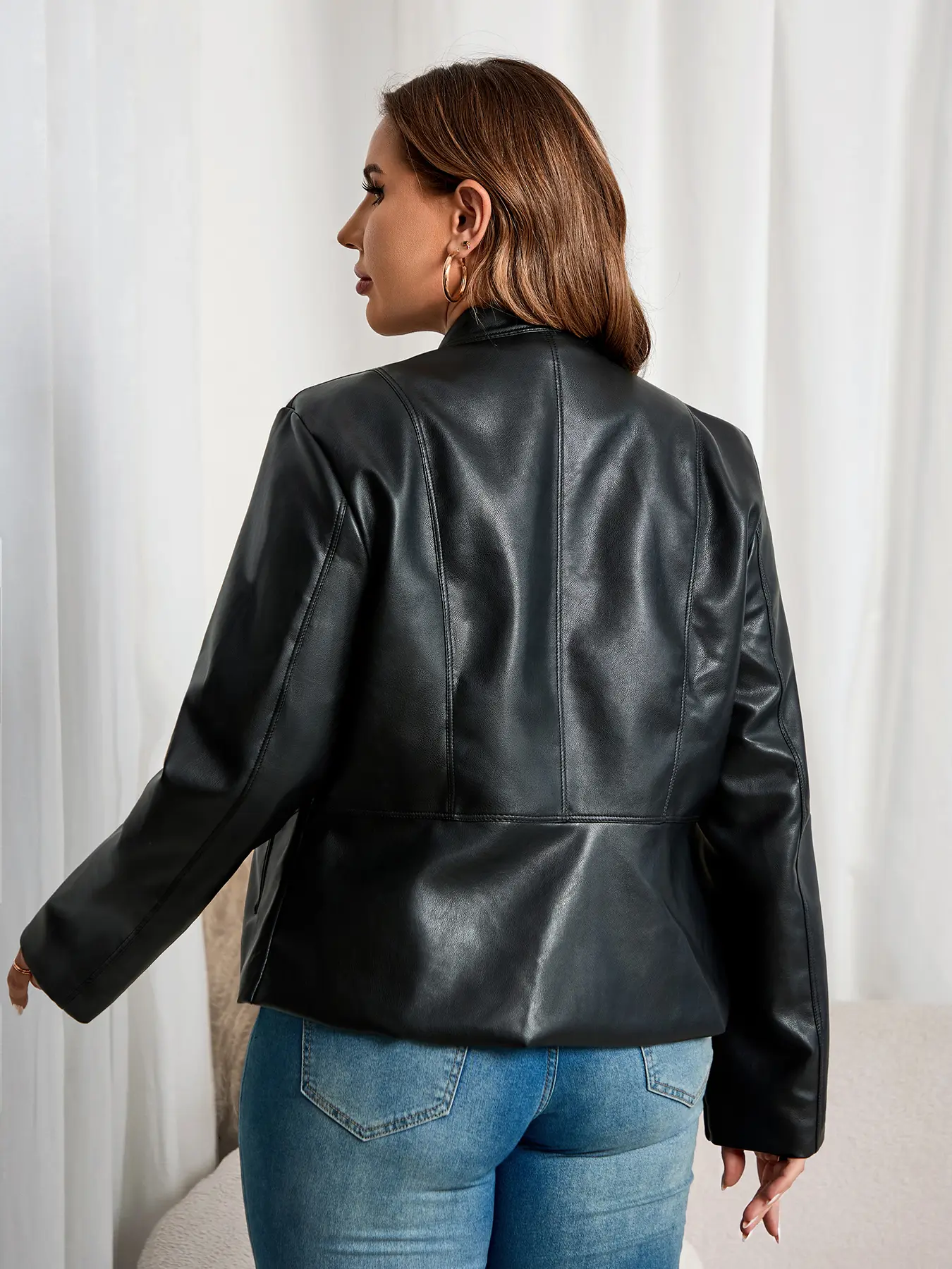Women's Plus Size PU Leather Jacket #tiktok #tiktokshop #tiktokmademebuyit #wowen #ootd