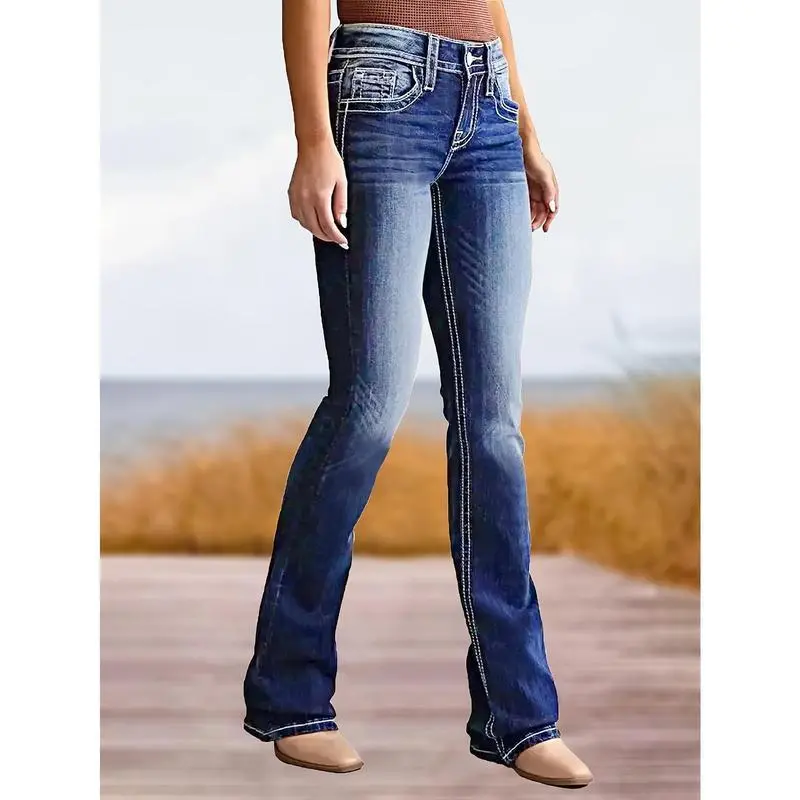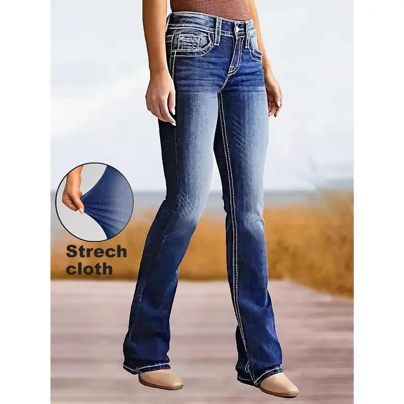 Women's Stretch Bootcut Jeans - Elegant Low-Rise Flare Denim with Whiskering Details, Comfortable & Stylish for Casual Wear, Comfortable Fashion |   Modern Skinny Jeans |   Viscose Blend Jeans