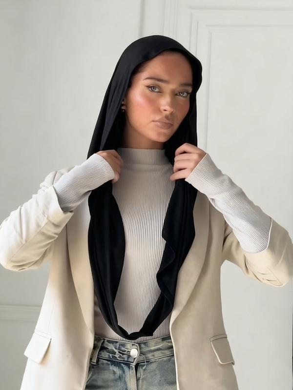 Women's Stretchable Jersey Hijab Scarf, Classic Plain Pattern Design, Soft & Breathable Fabric Suitable for Various Occasions, Turban Hijab