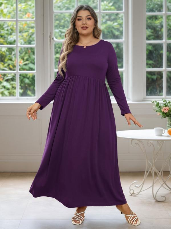 Women's Round Neck Stretchy Casual Long Plus Size Dress, Perfect for Bridesmaids, Vintage Style Wedding & Party Wear, Comfortable Fabric