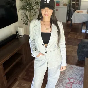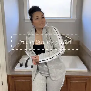 Love it !! The pictures below was only me trying the outfit on when I got it. I can’t imagine when I get Dress for real. I love that you can wear it with sneakers or dress it up with heels. I love the fit. I love that the jacket has Pockets. It’s thick sweatsuit material. I am 5’2”