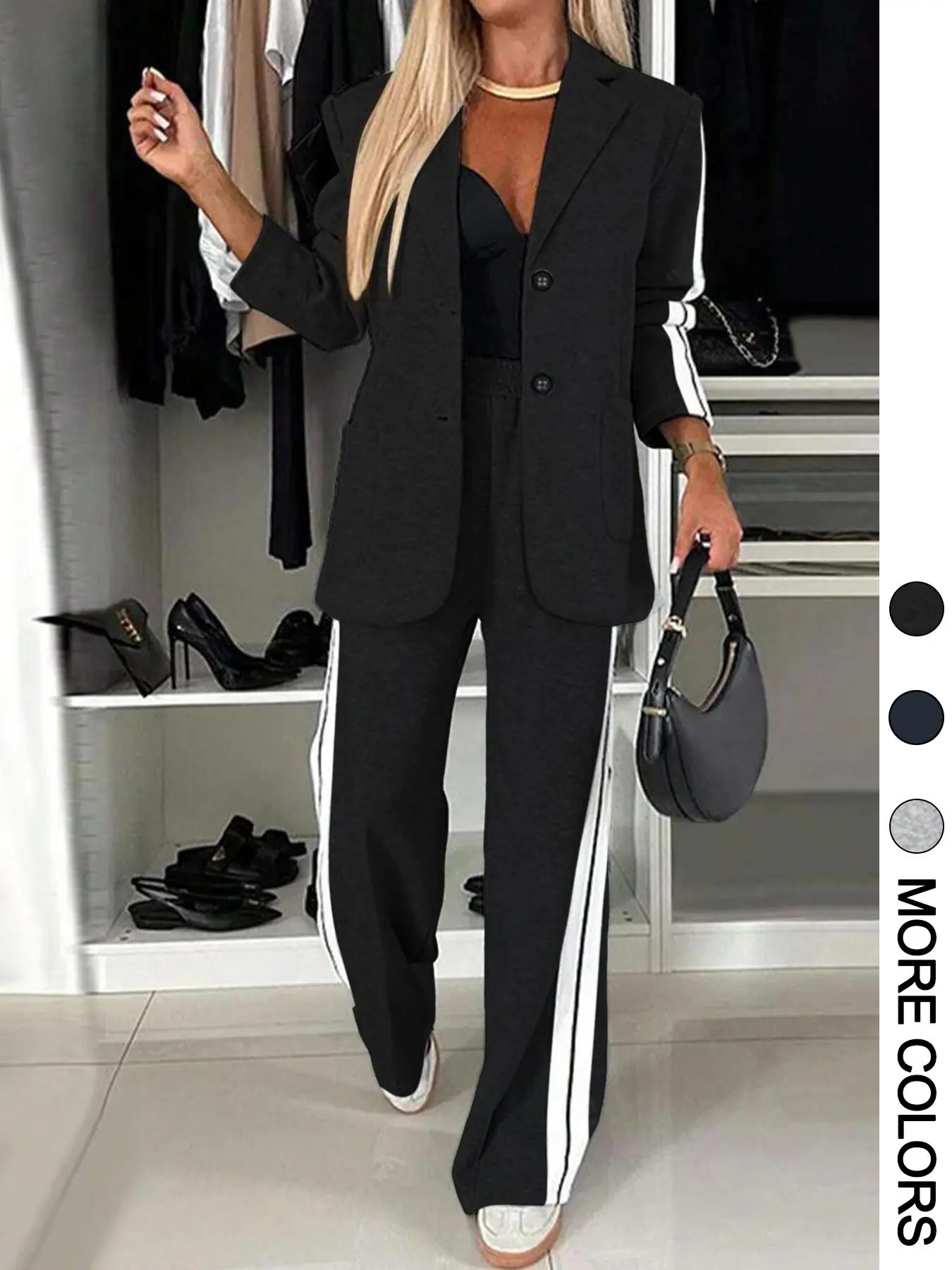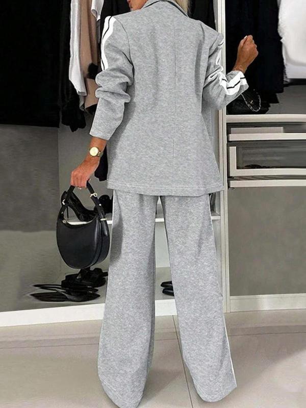Conjunto gris de blazer y pantalón ancho | Traje casual elegante con rayas laterales #ConjuntoDeMujer #BlazerGris #ModaCasualElegante #TikTokShopFinds #harmonylux @Harmony Lux Wellness Center