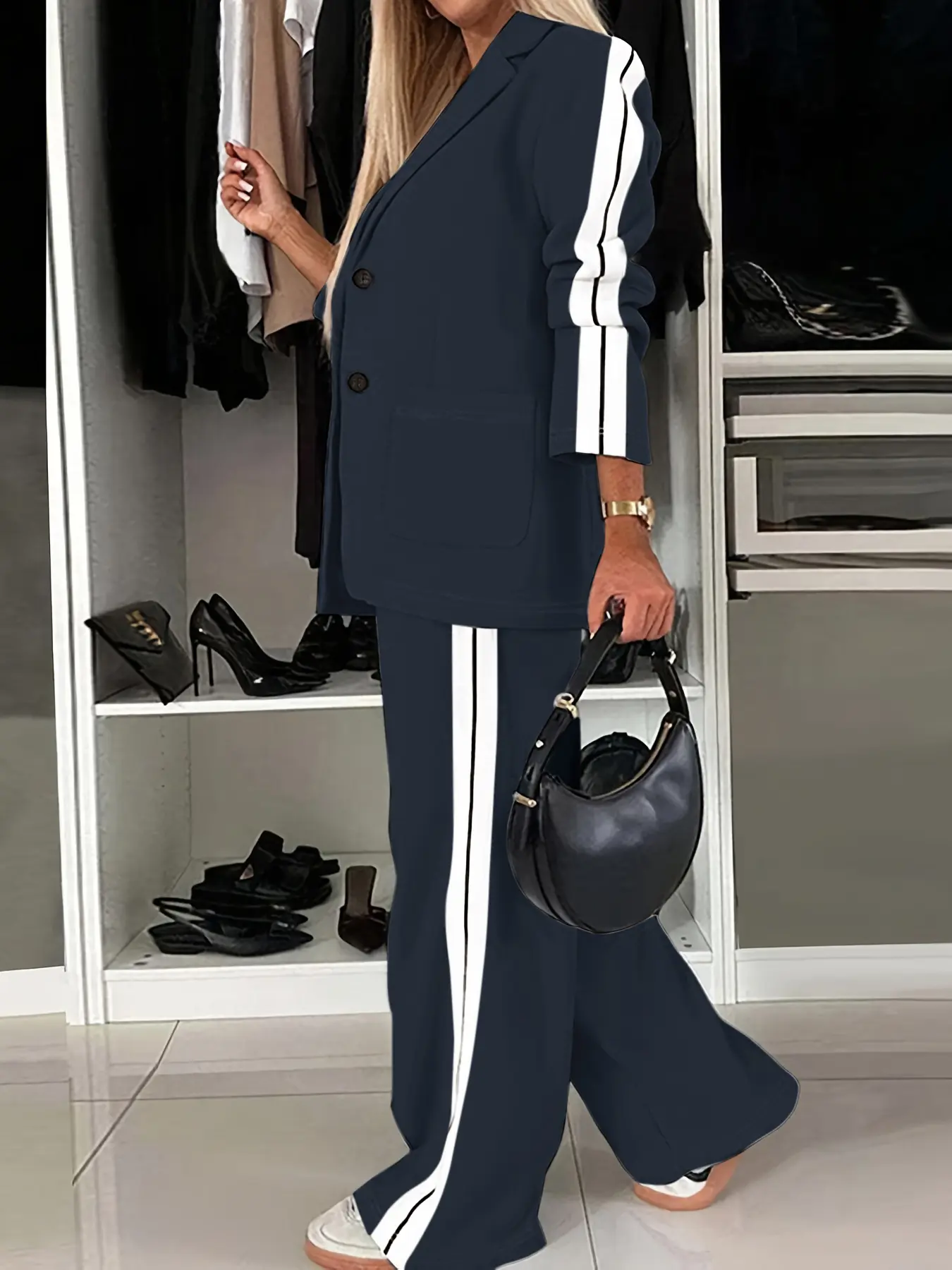 #womenwear #modamujer #blazerstyle #modafemenina #parati Set femenino elegante y moderno que incluye blazer estructurado у pantalón de pierna ancha con rayas laterales, ideal para looks casuales o semi-formales. Su diseño estiliza la figura, aporta comodidad y se adapta a todas las temporadas. Perfecto para oficina, salidas, reuniones o elevar cualquier outfit diario sin esfuerzo.