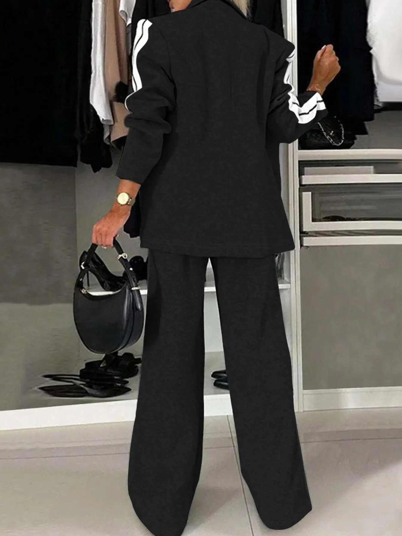 【Two-Piece Set】: Includes a striped blazer and wide-leg trousers, offering a coordinated look in one package.