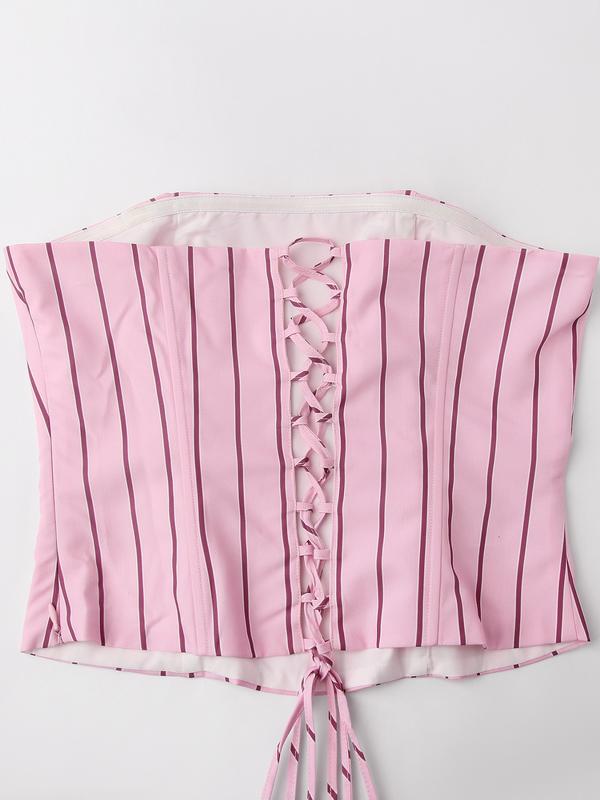 Women Striped Strapless Corset Top & Wide Leg Pants 2 Piece Set Sexy Daily Outfits Women Sets