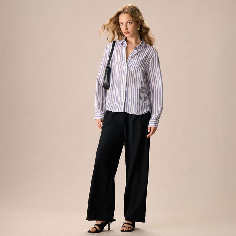 These versatile pants feature an elastic waistband for a secure, personalized fit, ensuring all-day comfort. The straight-leg design offers a timeless silhouette, while the practical pockets add both functionality and style.