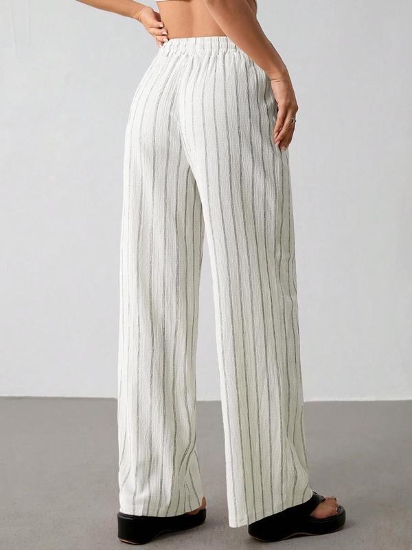 Valentine's Day Women's Striped Waist Tie Straight Leg Loose Casual Pants, Fitted Style, Moderate Fabric Thickness, All Seasons Wear