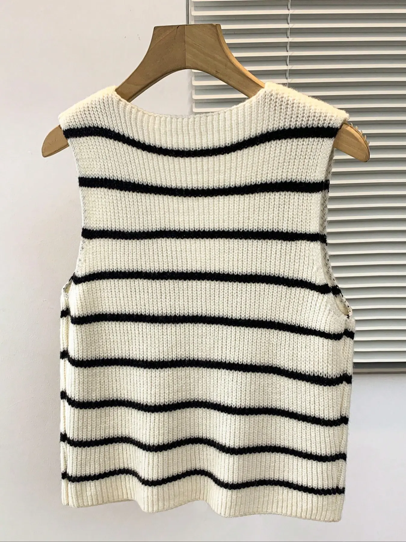 Women's Spring Summer Striped Colorblock Knit Sweater, Casual Holiday Wear, Elegant Home Clothing, New Autumn Top, Ladies' Fashion #cardigans #womenstwopiecesets #vnecktanktop #vneckcardigan #valentinesdaysweater #fashionnovaclothes #stripedcardigan #womenstanktop #womenshighfashionsweaters #widenecksweater