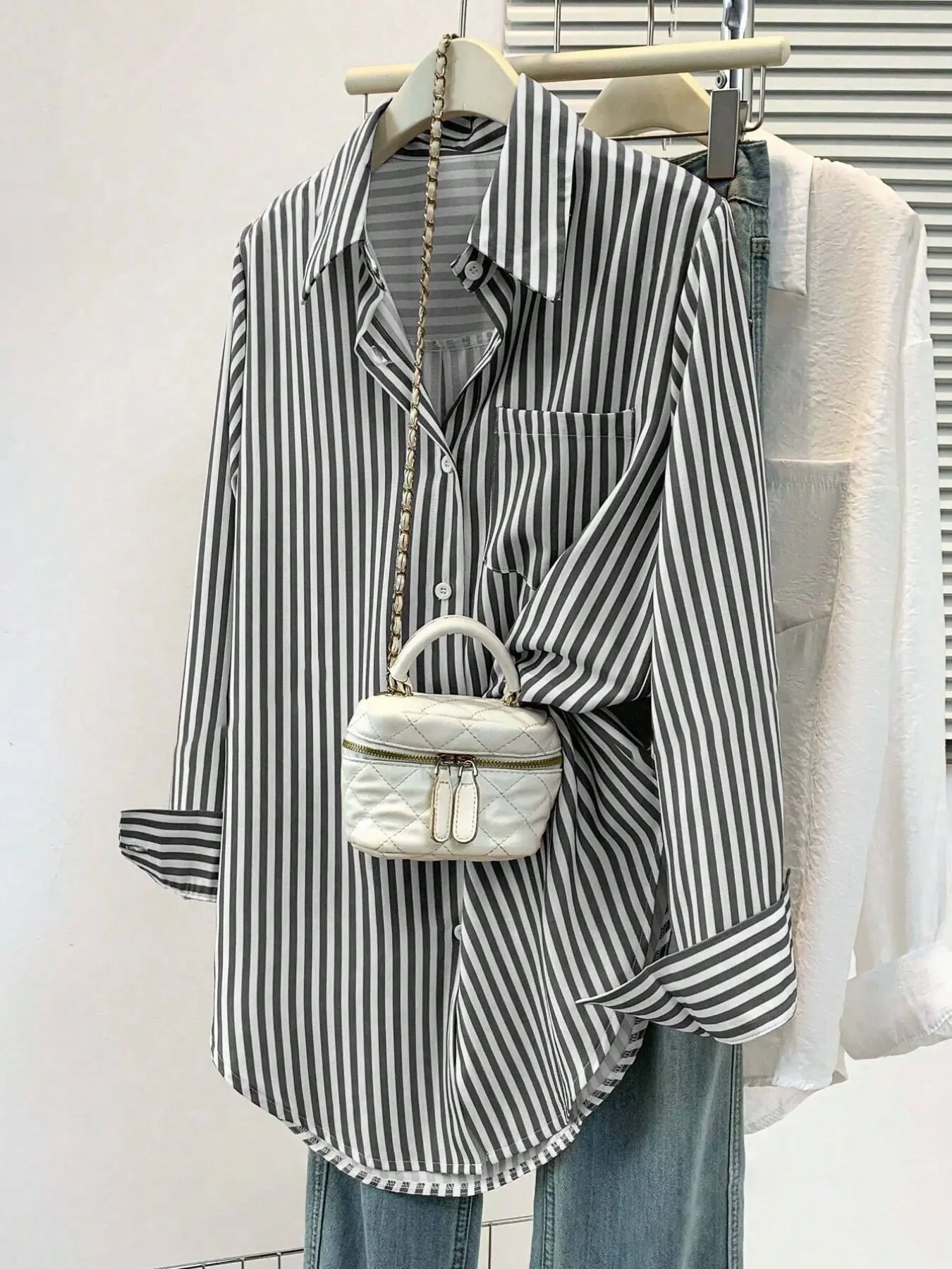 Camisa casual de manga larga a rayas de moda para mujer, ropa para todas las estaciones, ropa con estilo diario, cĂłmoda y versĂĄtil#camisas #tshirts #tshirt #fashiontiktok #fashionwomen