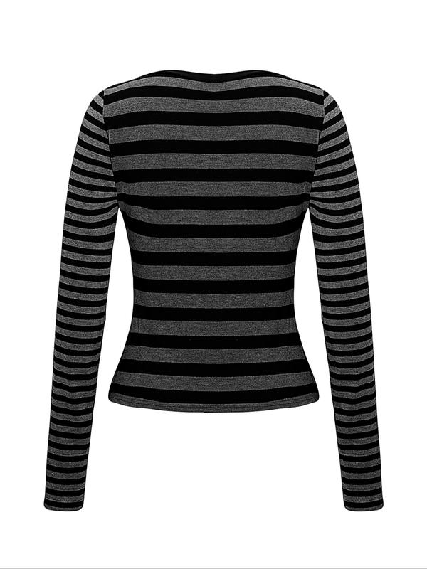 Women's Fall Winter Striped Long Sleeve T-Shirt, Comfortable Casual Slim Fit Top, Perfect for Home & Outdoor Wear