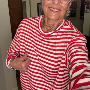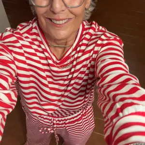 Size M for size reference. If you love CANDY CANE stripes like I do around the holidays here is your loungewear. For the “DISCERNING WOMAN!”