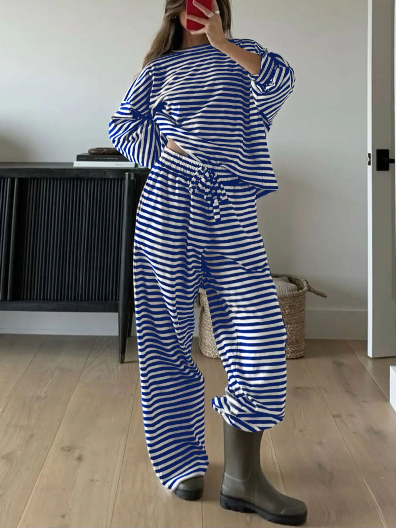 Bought both the blue and the black. Couldn’t decide between the two colors. Look a little bit different than in the photo shown which I expected. Overall, the set is super! I will also probably wear the pants with a different top. But I like having the options.