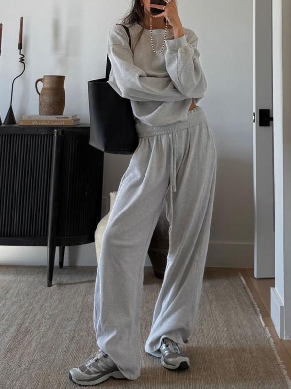 I got these in several colors. Pants are more of a trouser cut. Very soft material and warm. Pockets on sides. I’ve really enjoyed these cute sets.
