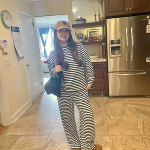 I love the set, even though I look like an inmate. It’s comfortable- soft and roomy!