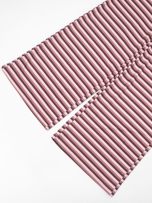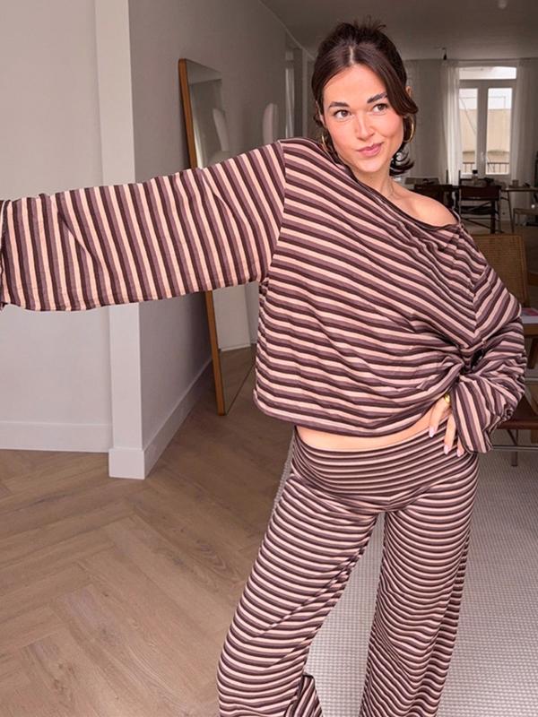 Women's Fashion Casual Striped Long Sleeve Top + Pants Two-Piece Set, Comfortable Trendy Spring & Fall, Perfect for Daily Wear