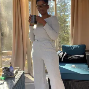 So soft and comfy. I would wear this out to get coffee or just lounge around in the house. I feel so classy in this loungewear.