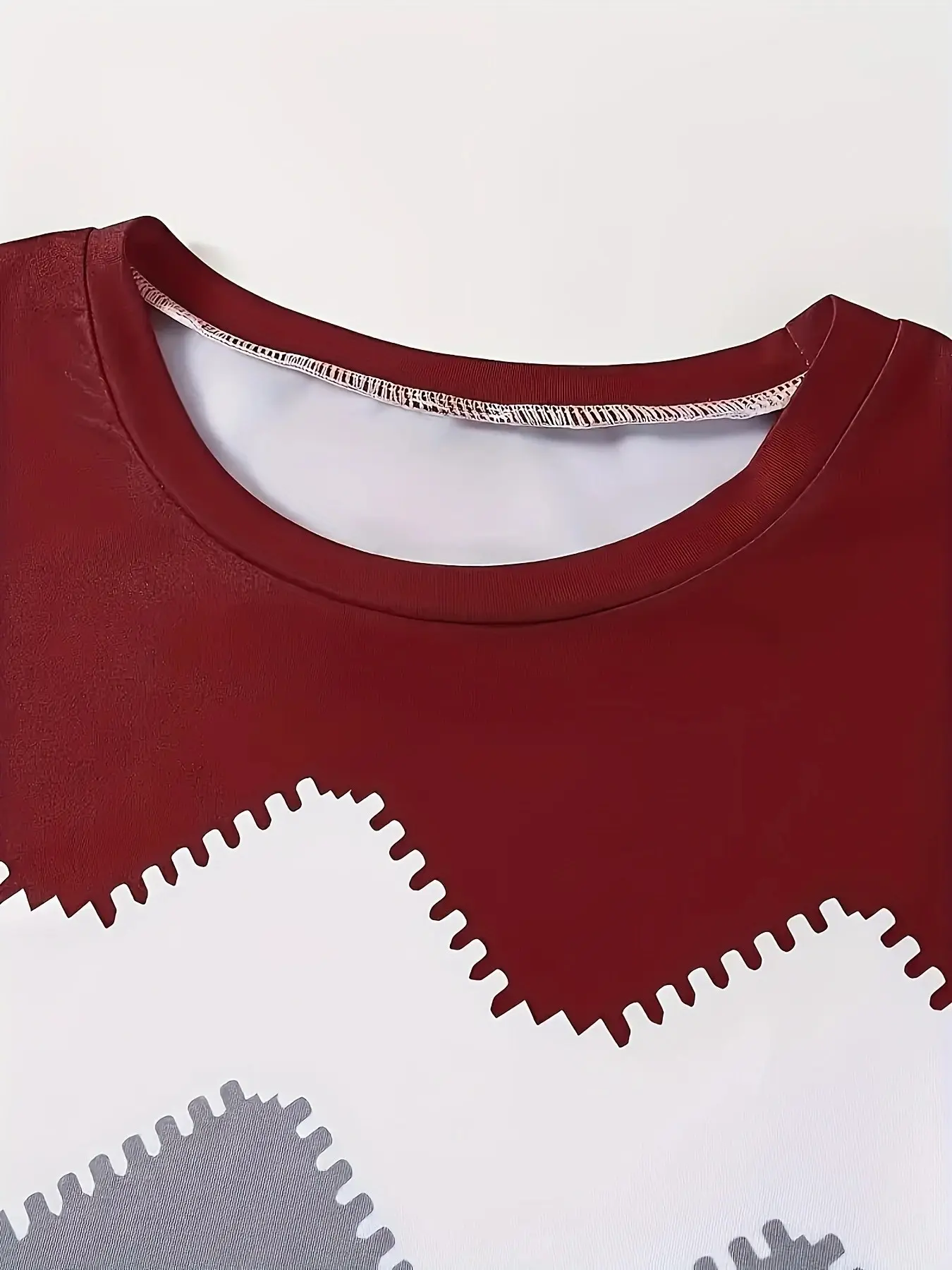Women's Striped Patchwork Casual Two-Piece Set, Spring & Fall Fitted Round Neck Short Sleeve Top and Long Pants, Womenswear